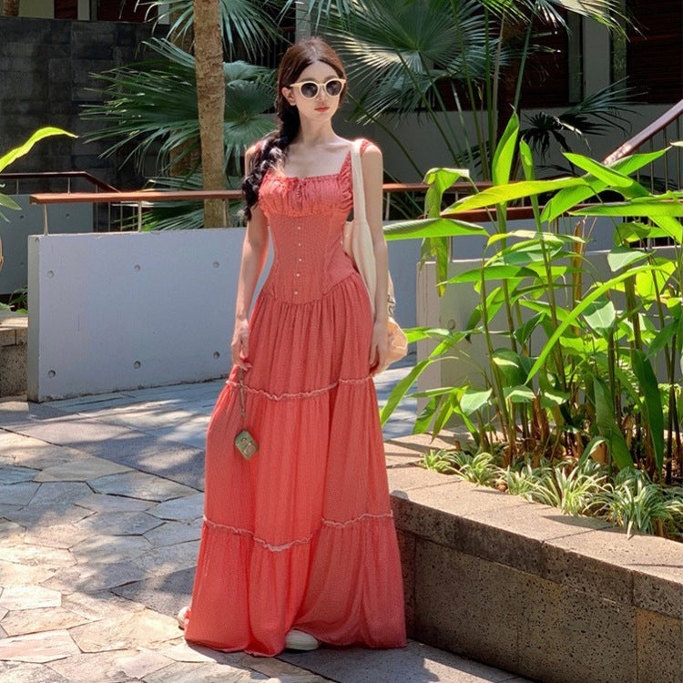 Flared Long Sleeve Dresses Women Square Neck Ruffled Swing Dress
