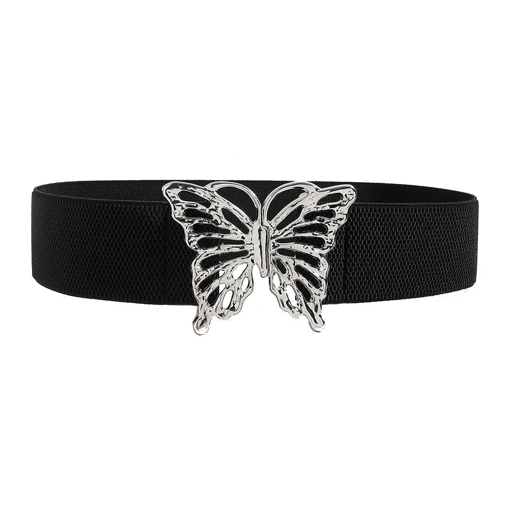 Fashion Women's Butterfly Belt Elastic Elastic Buckle Waist Seal Decorative Shirt Dress Waist Trim