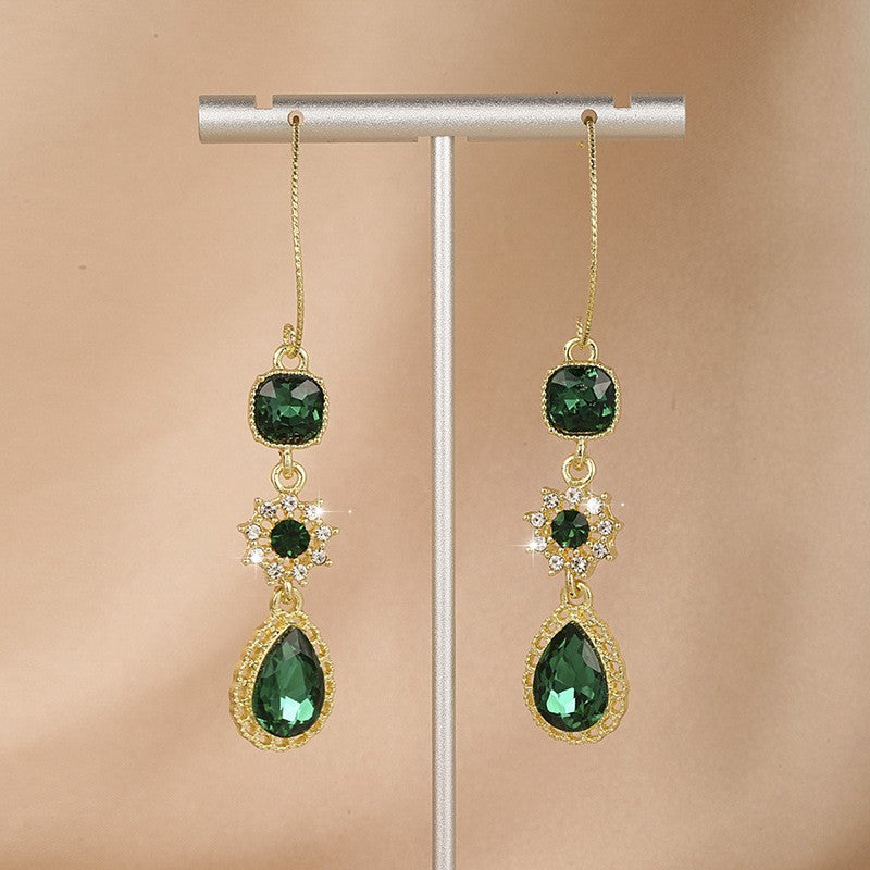 Green Long Water Droplet Fringe Earrings For Women's Fashion, Light Luxury Temperament, Flower Ear Hooks, Antique Earrings