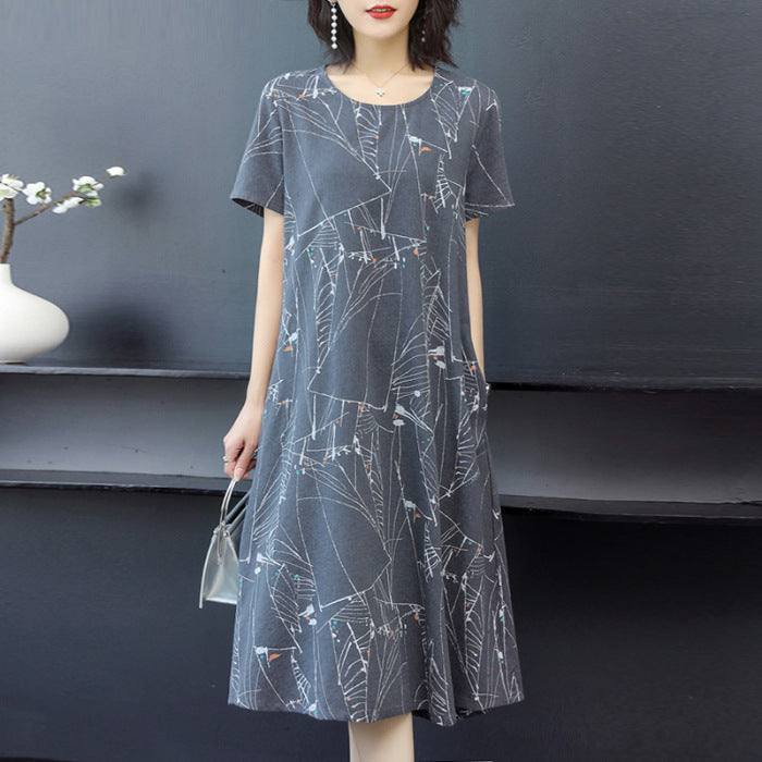 Women's Round Neck Short Sleeve Loose Midi Dress