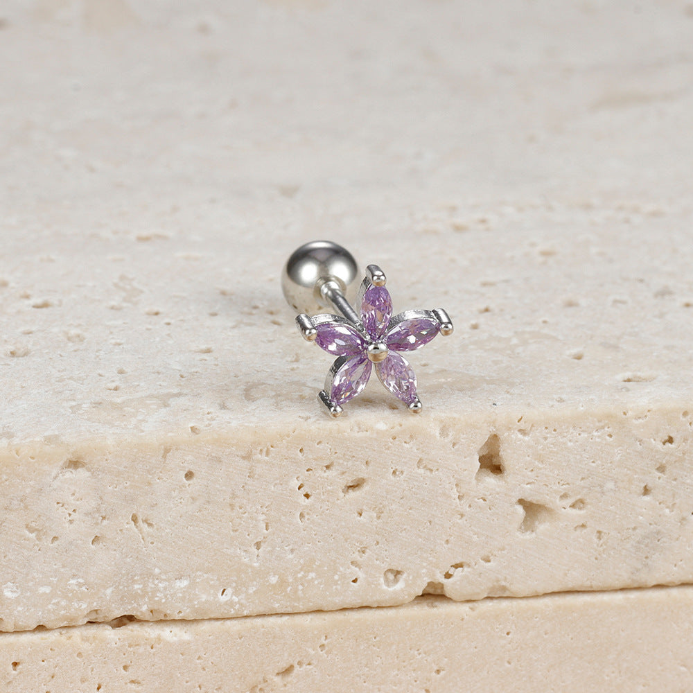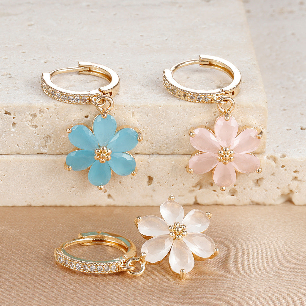 Simple Zircon Six-leaf Flower Pendant Earrings For Women