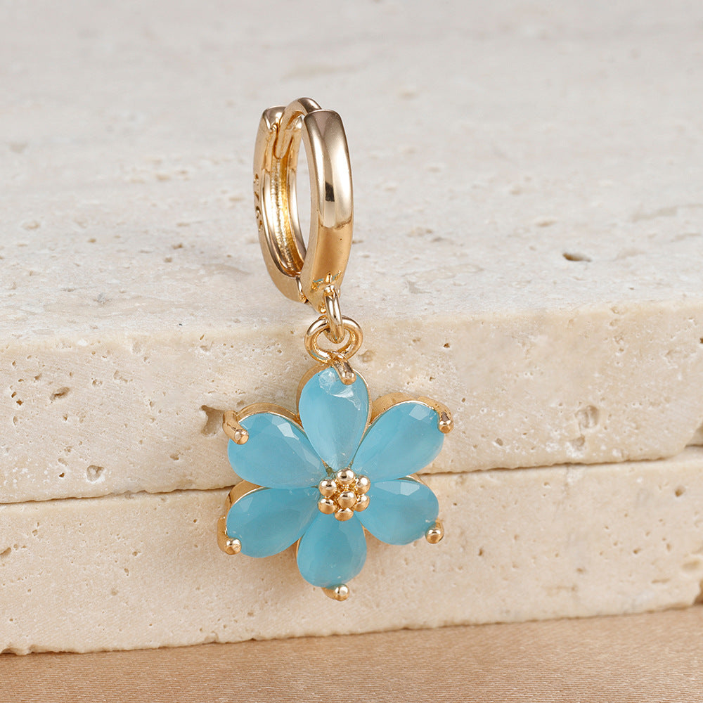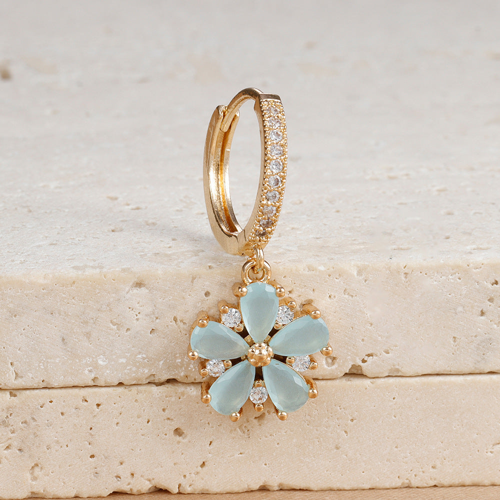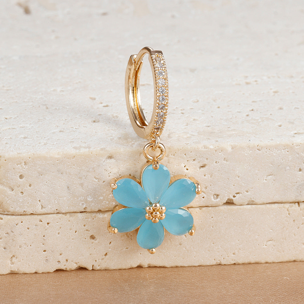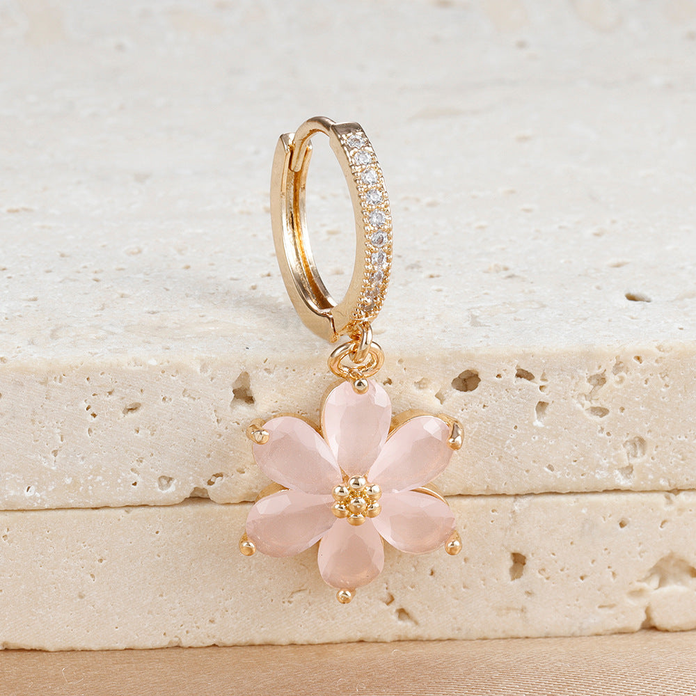 Trendy Six-leaf Flower Pendant Zircon Earrings