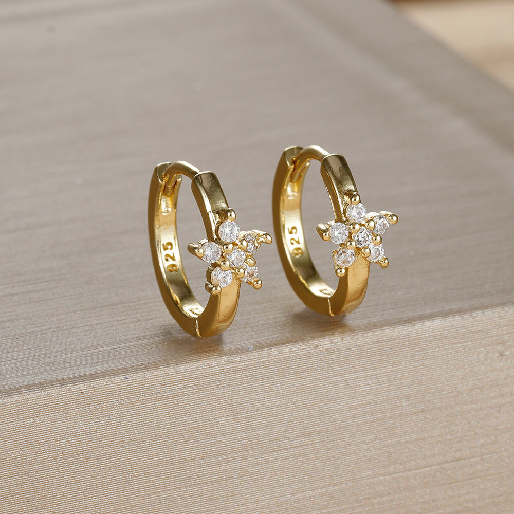 Silver Needle Geometric Stars Rhinestone Earrings Women's Fashion