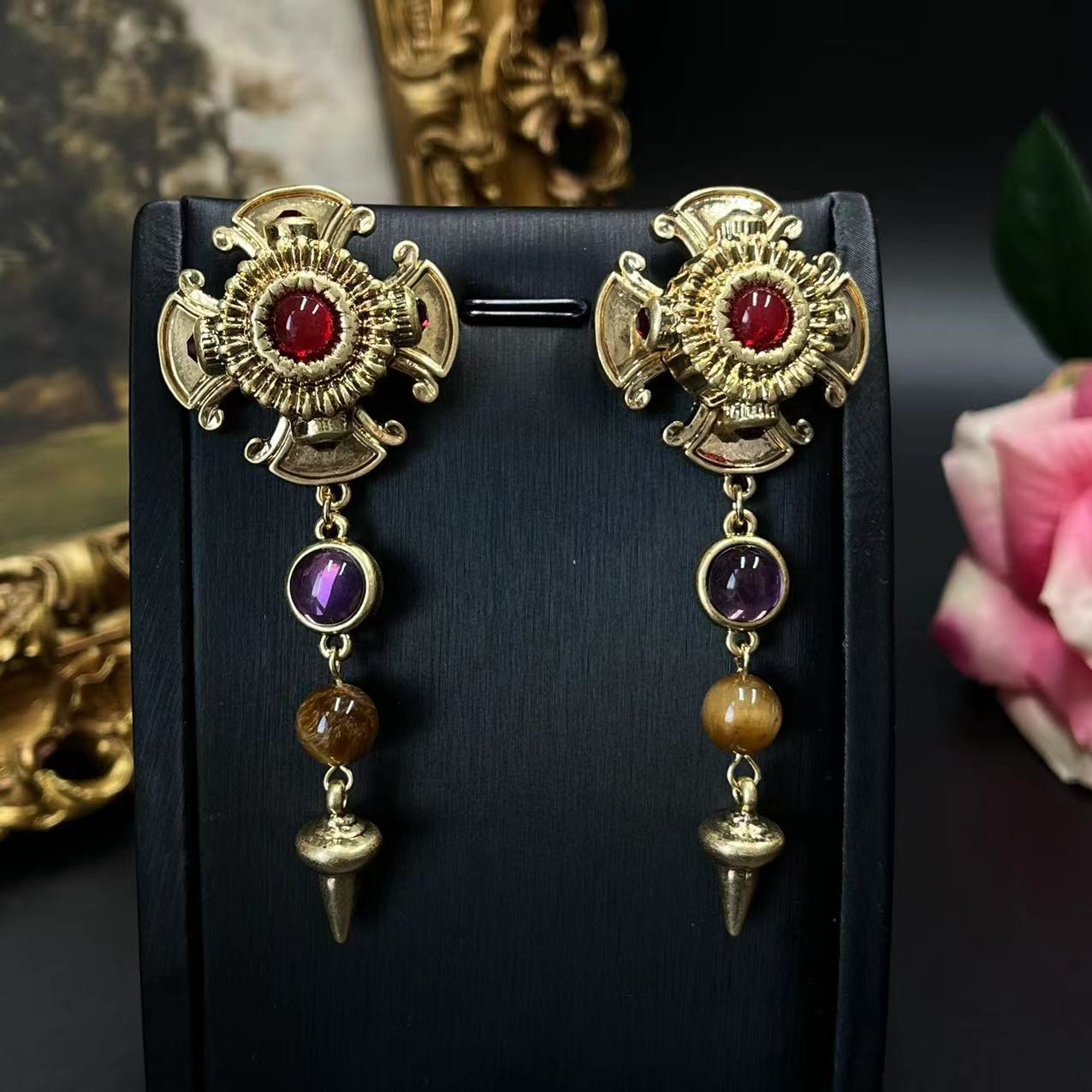 Western Retro Tigereye Long Earrings