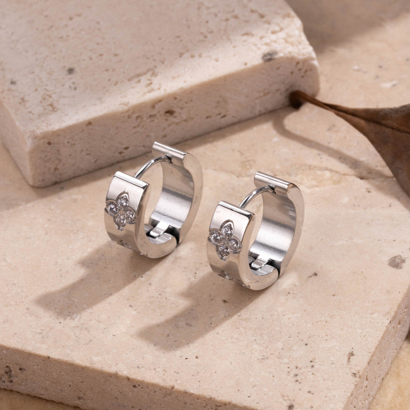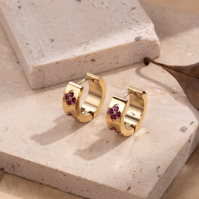 Titanium Steel Niche Retro Color Light Luxury Design Plum Blossom Zircon