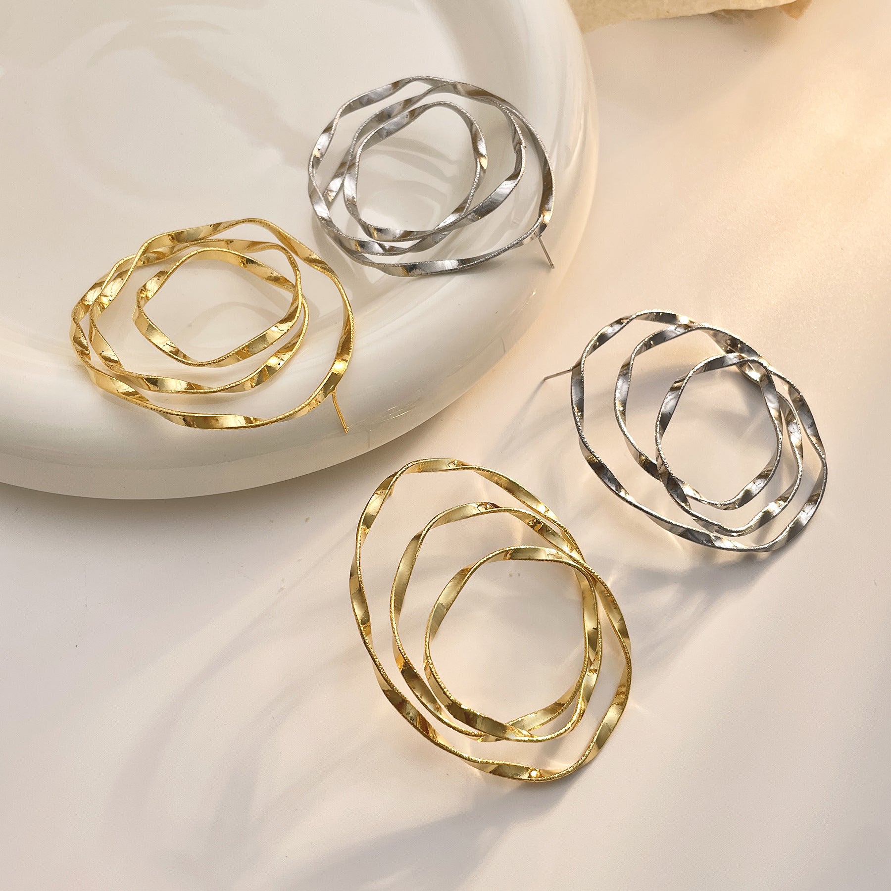 Style Exaggerated Big Circle Three-dimensional Twisted Personality Ear Studs Cold Style High Sense