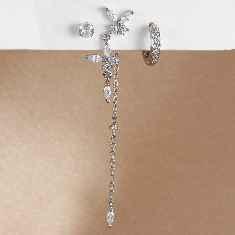 Inlaid Zircon Fashion Four Eight-pointed Stars Women's Earrings Three-piece Set