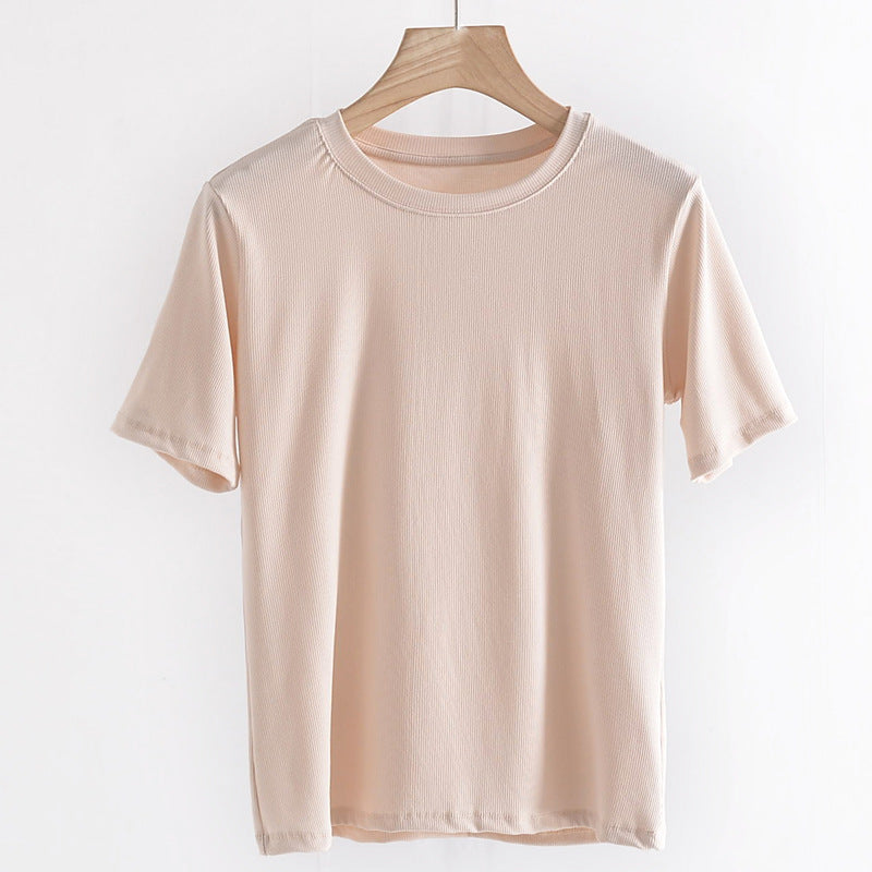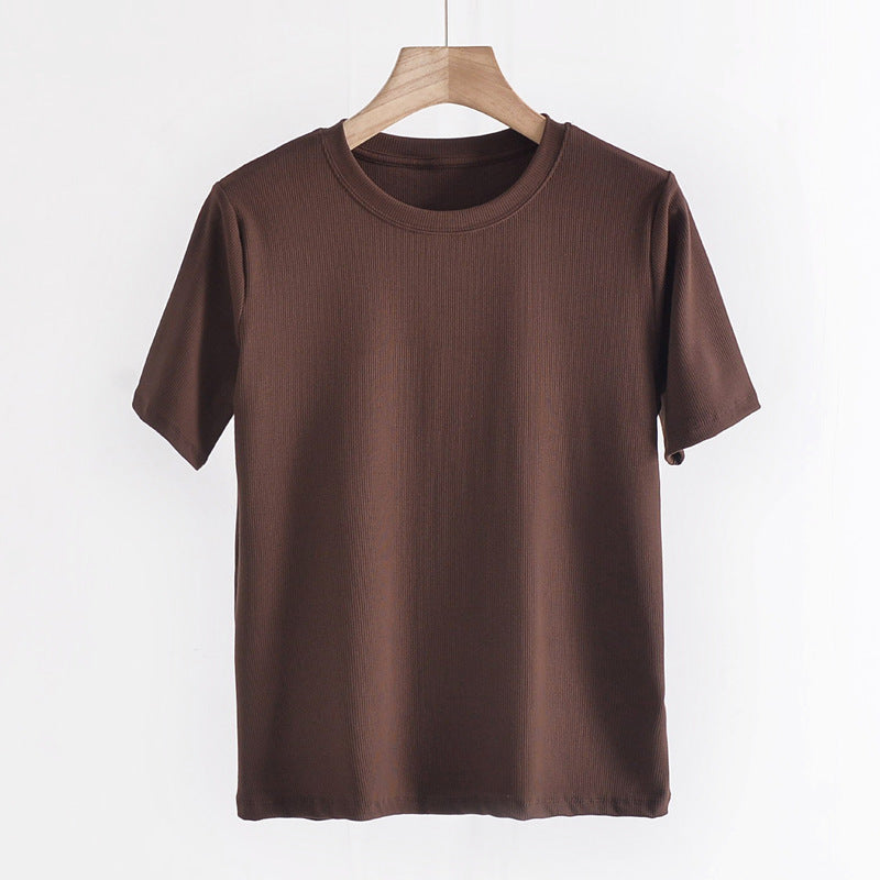 Women's Round Neck Bottoming Shirt Knitted Top T-shirt With Short Sleeves