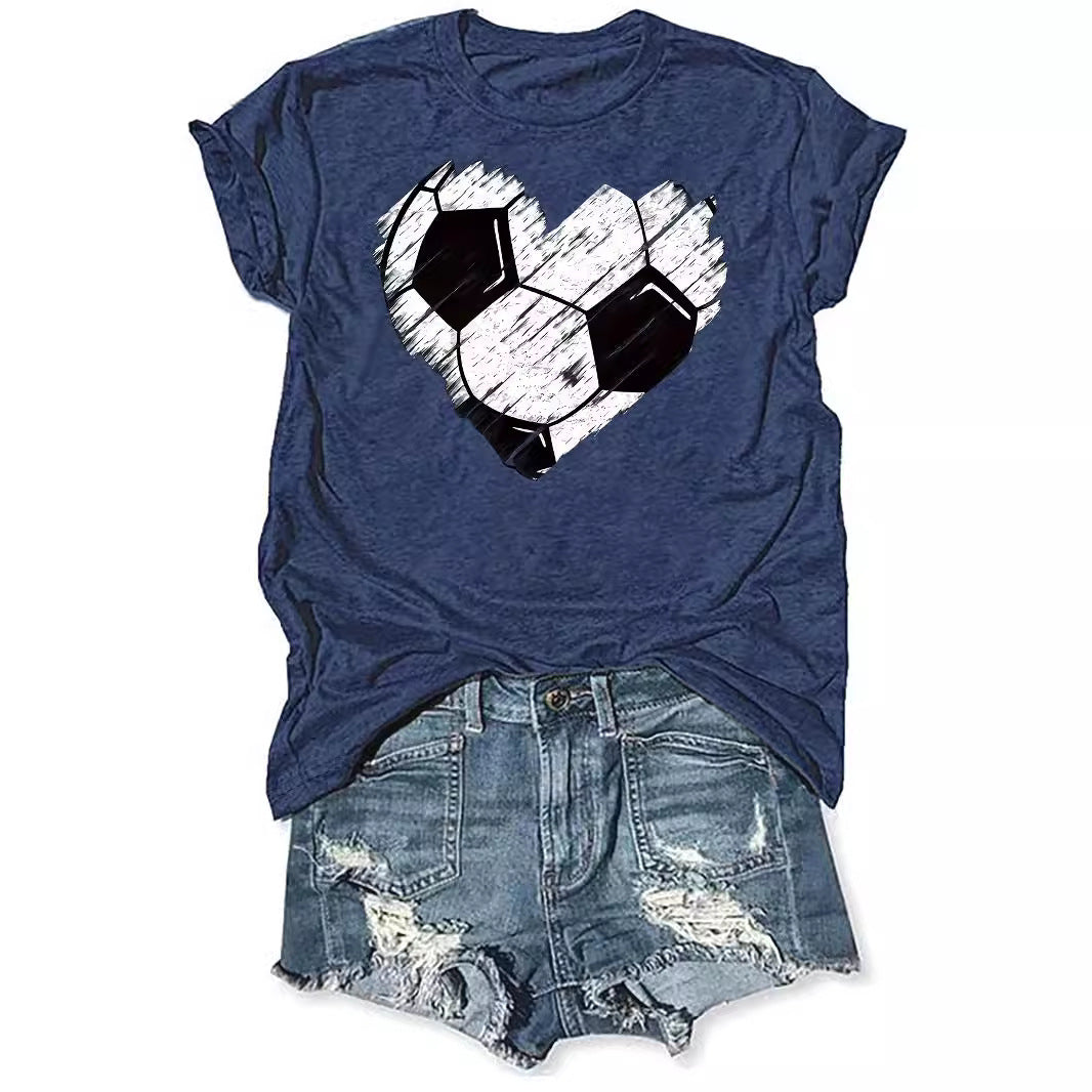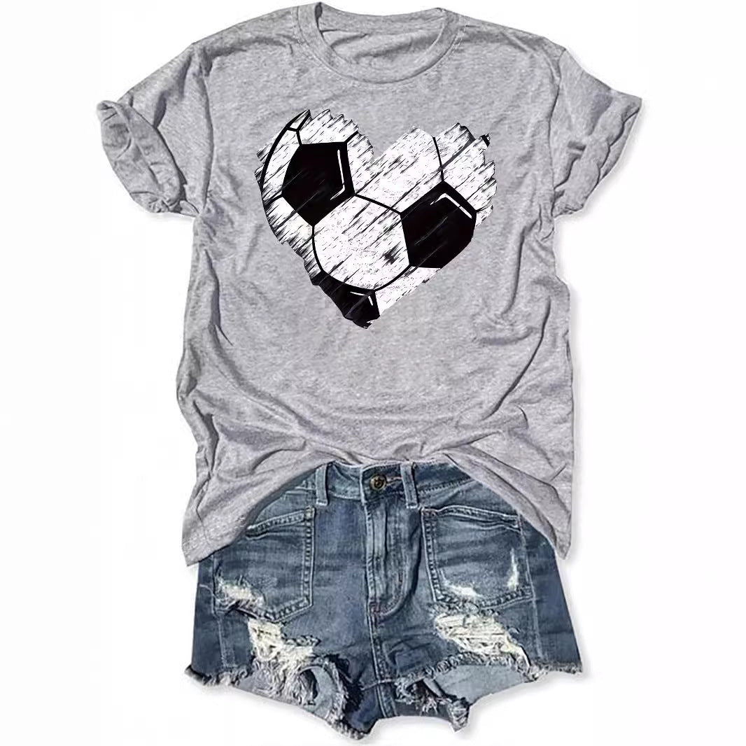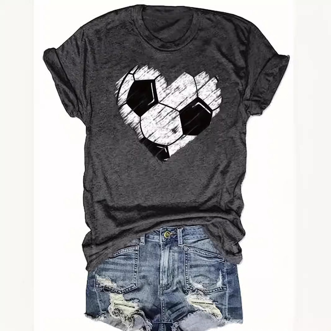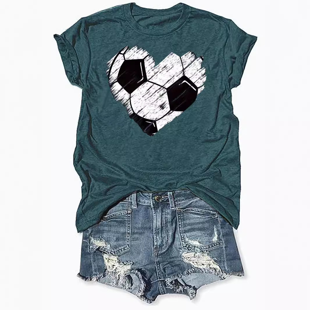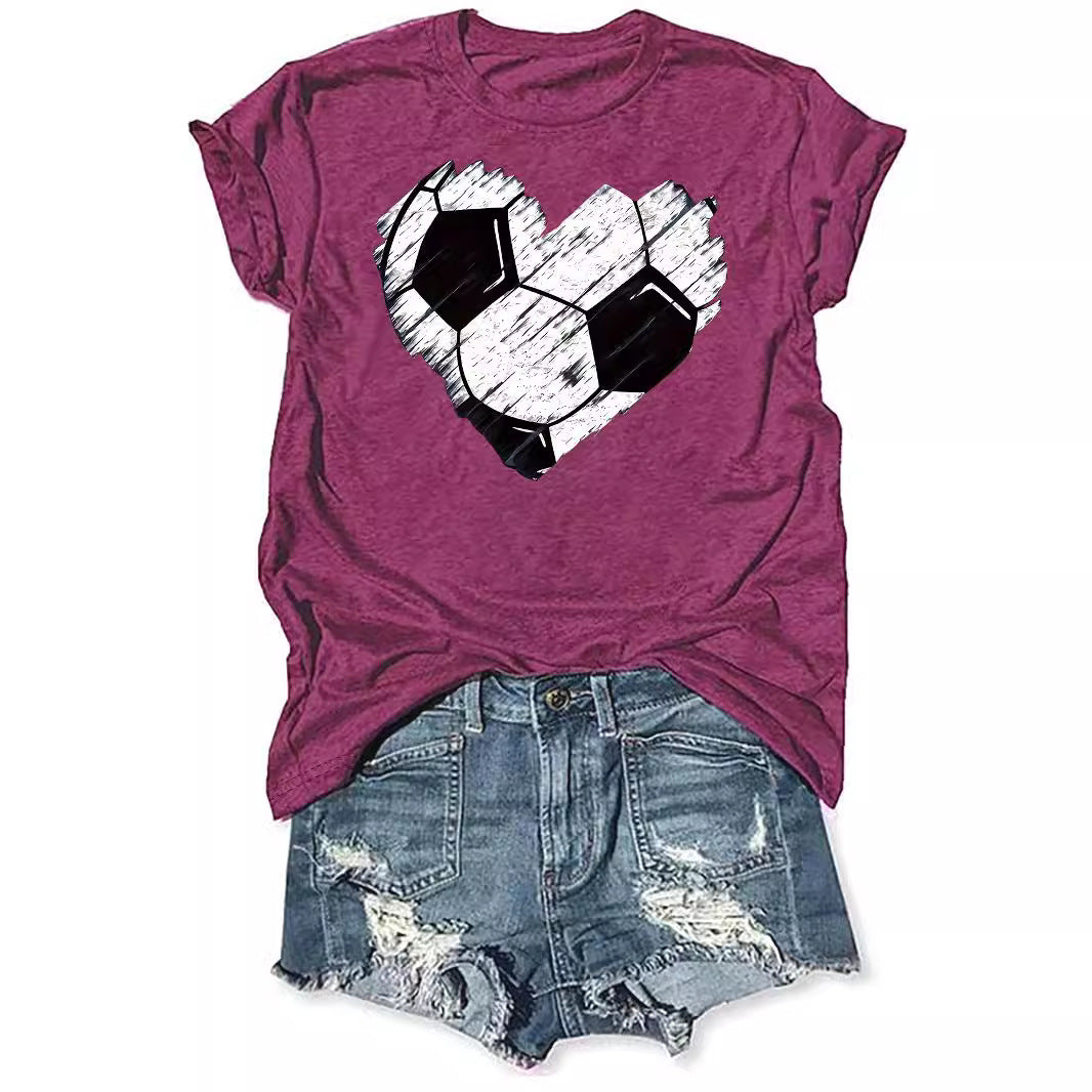 Personalized Love Football Pattern Printed Color Round Neck Short Sleeve