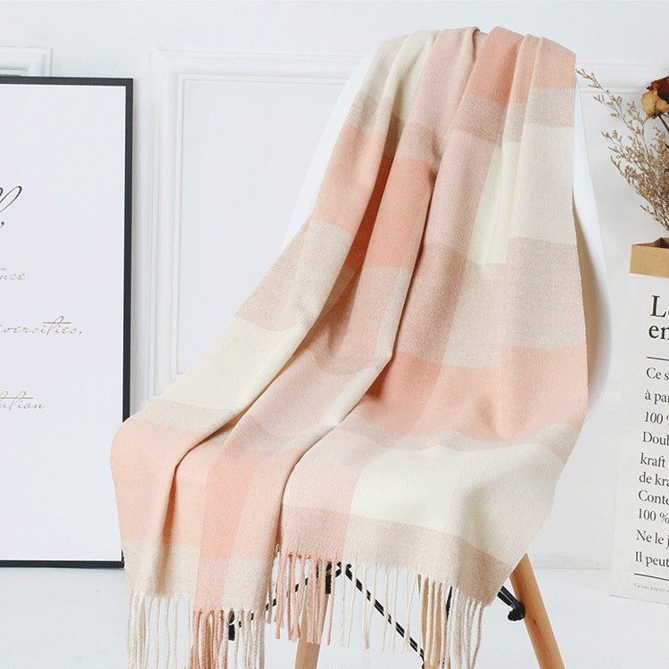 Retro Plaid Scarf Women Winter Imitation Cashmere Shawl