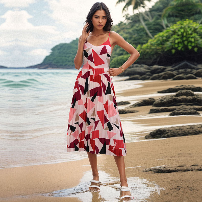 Camisole Vacation A- Line Midi Dress Geometric Print