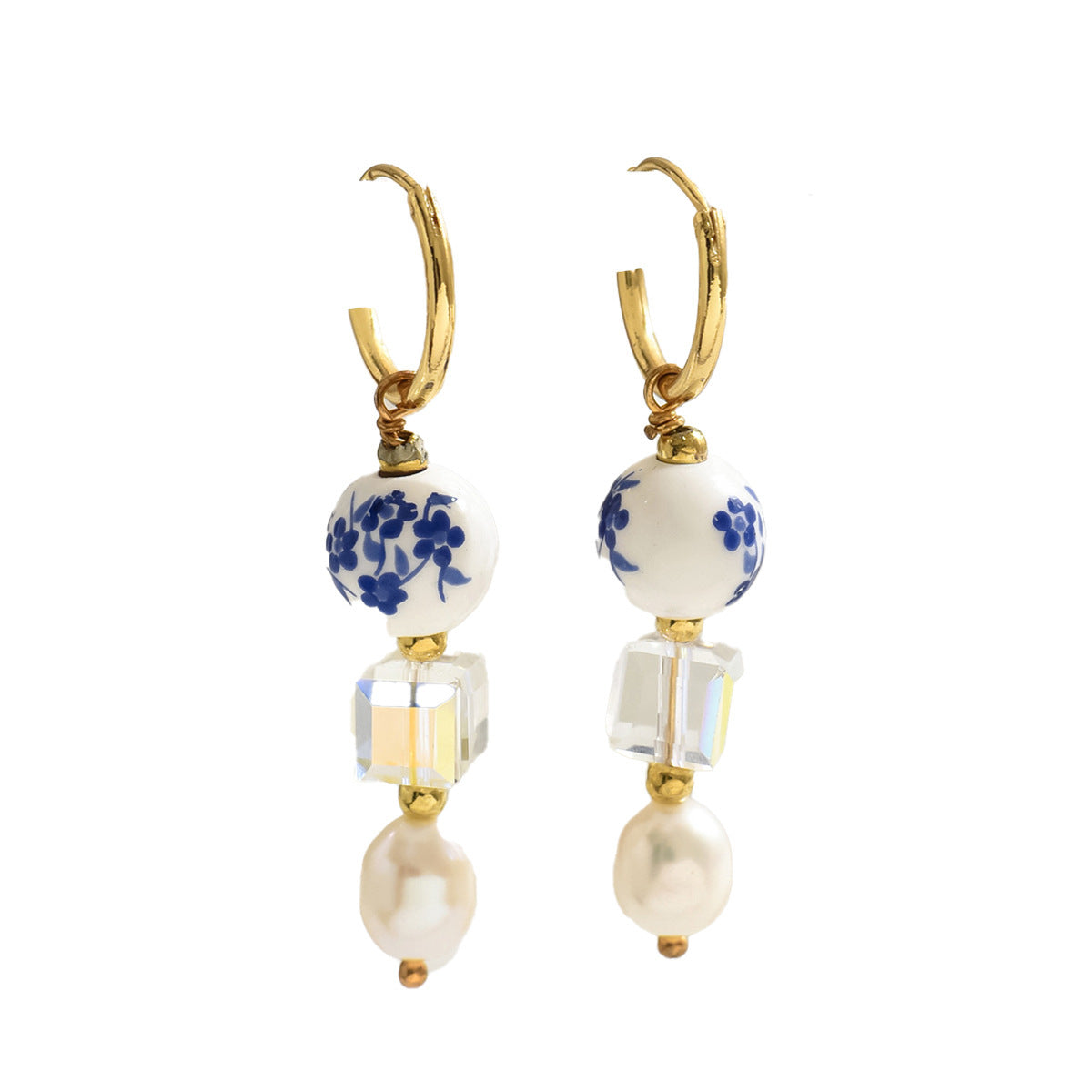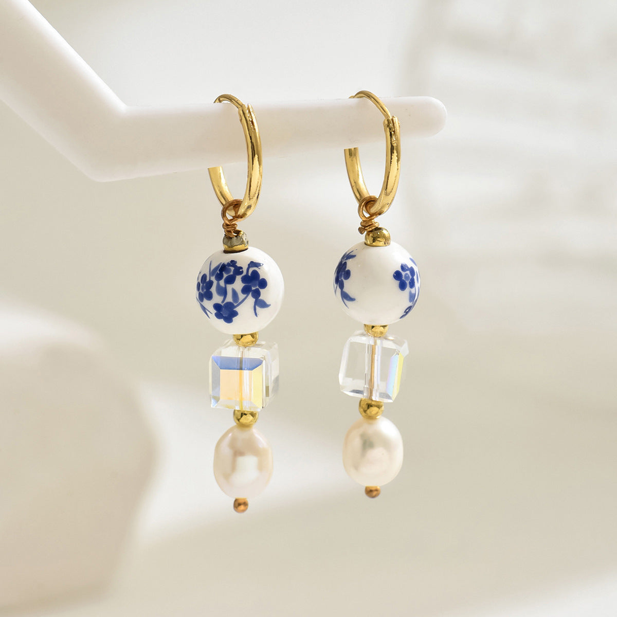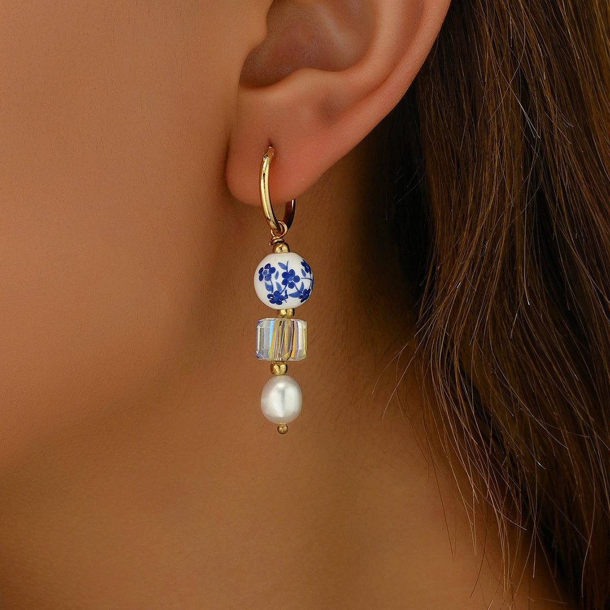 Ceramic Ear Studs Inlaid Pearl Natural Stone