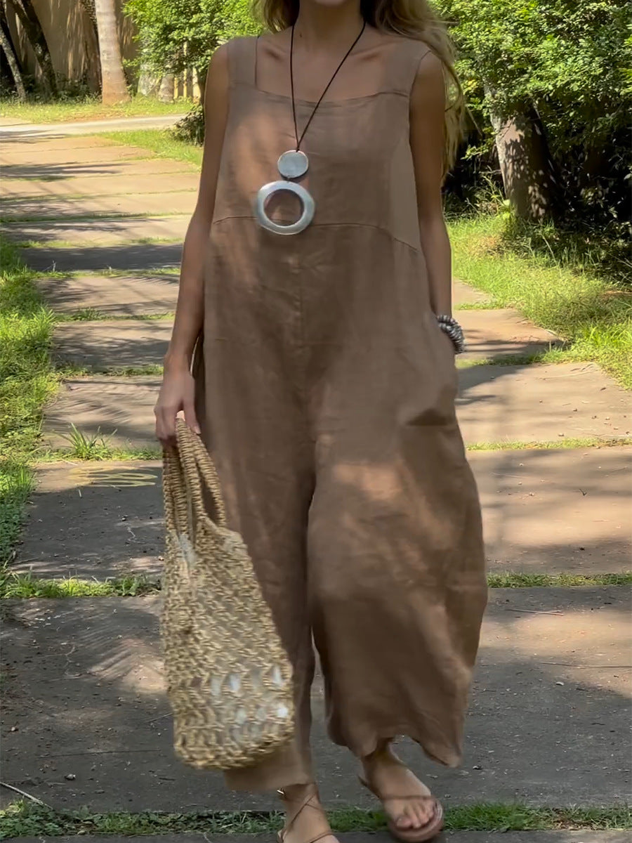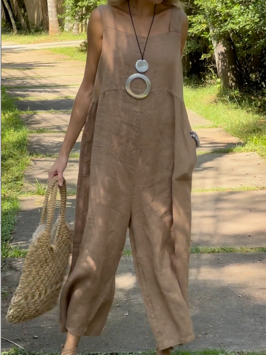 Cross-border Cotton And Linen Casual Suspenders Pants