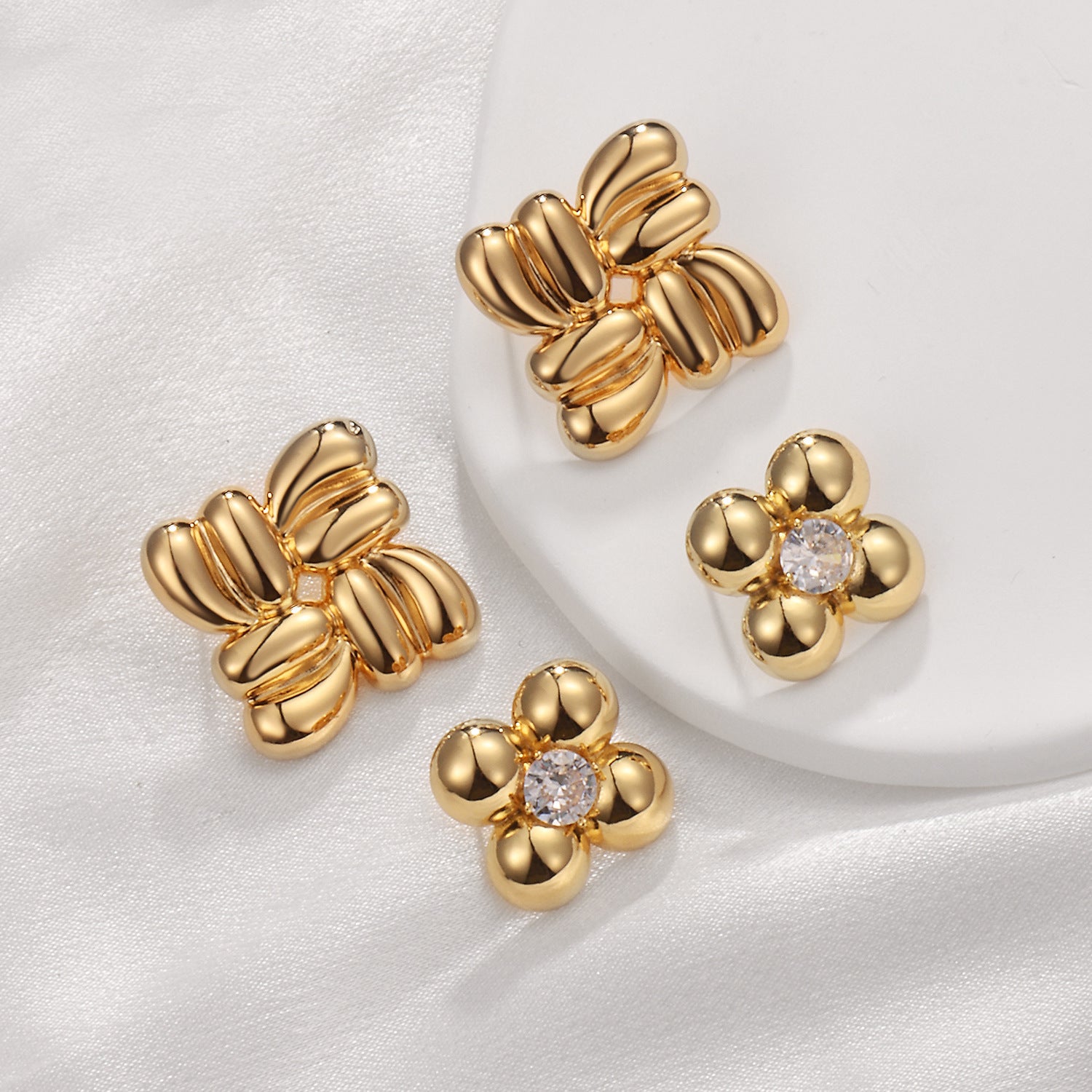 Electroplated Real Gold Vintage Zircon Stud Earrings For Women