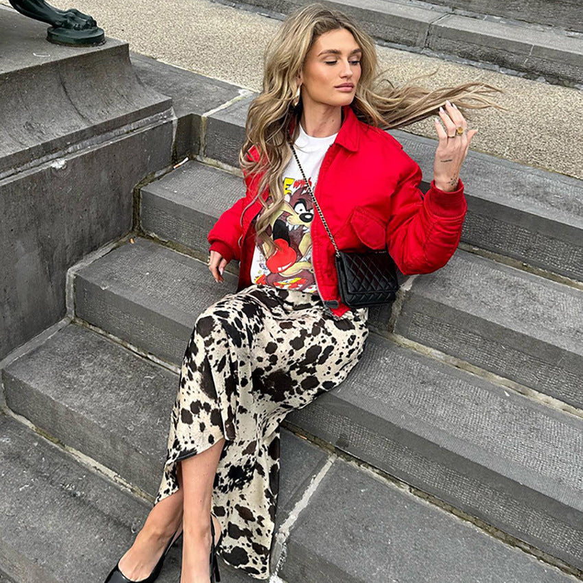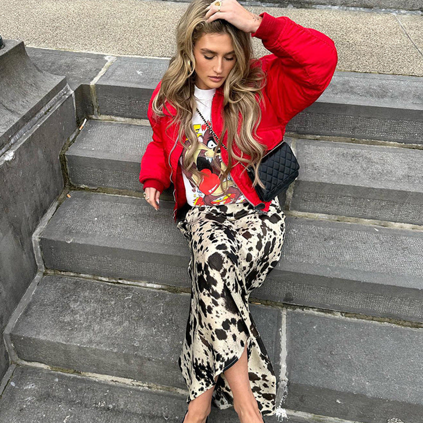Elegant Graceful Printed Simple Style All-match High Waist Skirt Cross-border Niche Long Skirt