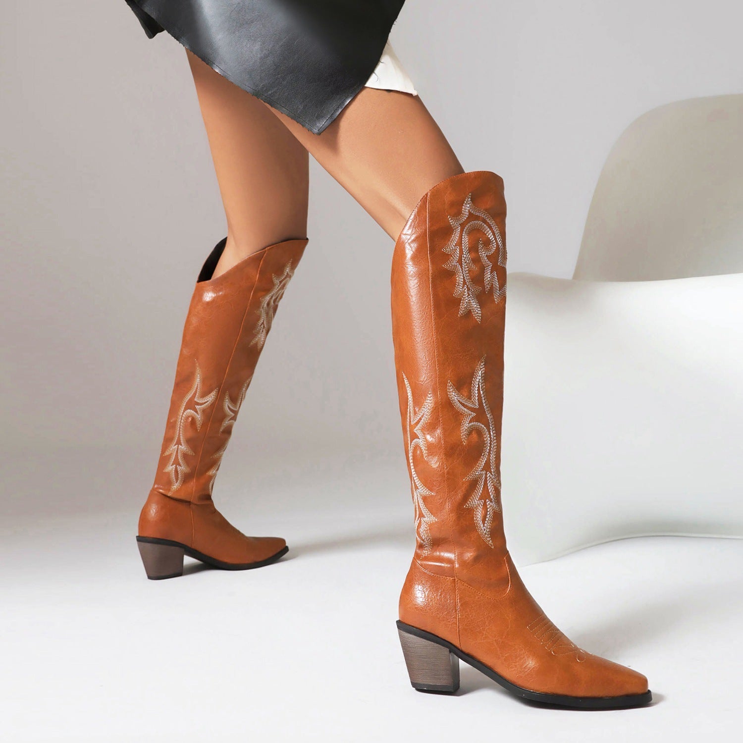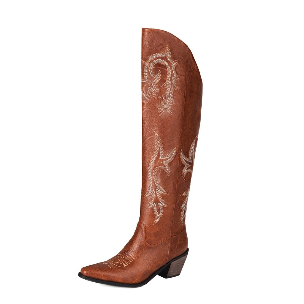 Embroidered Boots Autumn And Winter Chunky Heel