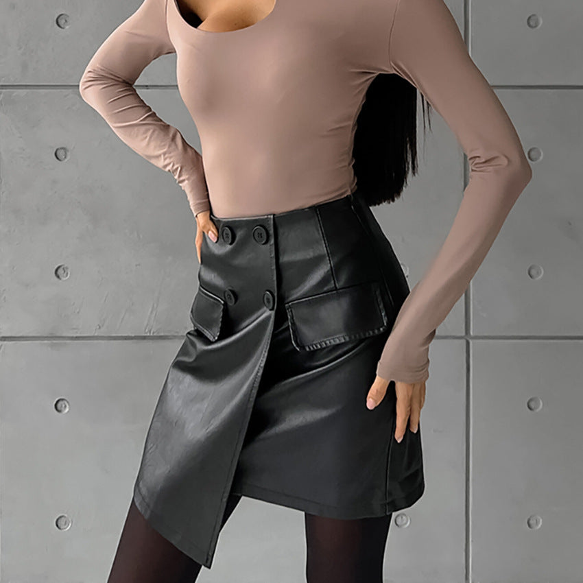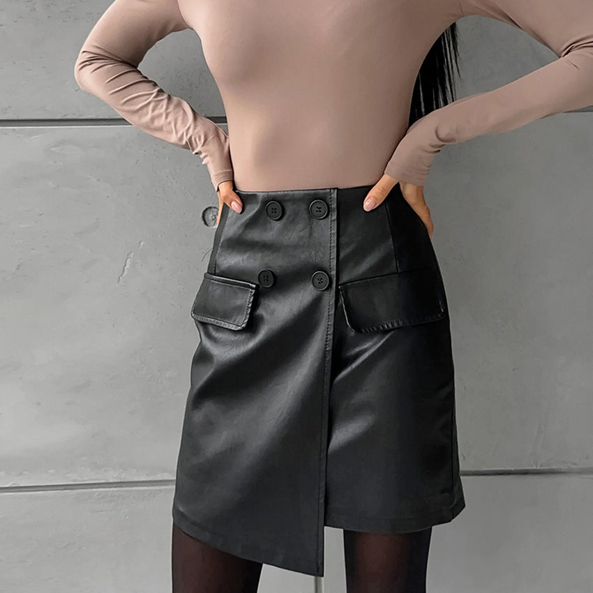 European And American Girl Leather Hip Skirt Female Punk Dark A Word