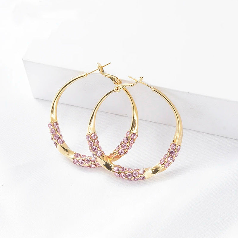 Color: gold pink diamonds [a pair], silver white diamonds [a pair]]