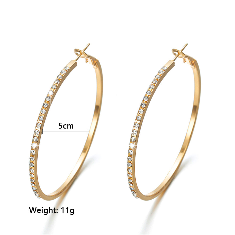 Fashion Hoop Earrings With Rhinestone Big Circle Earrings Simple Earrings Big Circle Gold Color Loop Earrings For Women