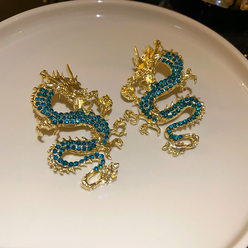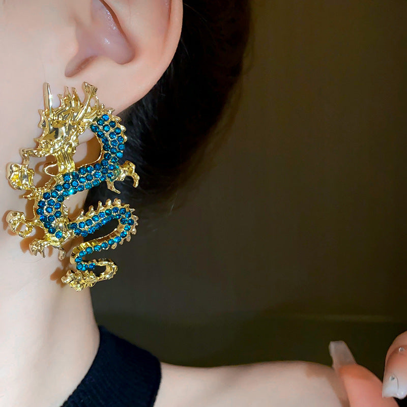 Fashion Retro Dragon Pattern Silver Stud Earrings