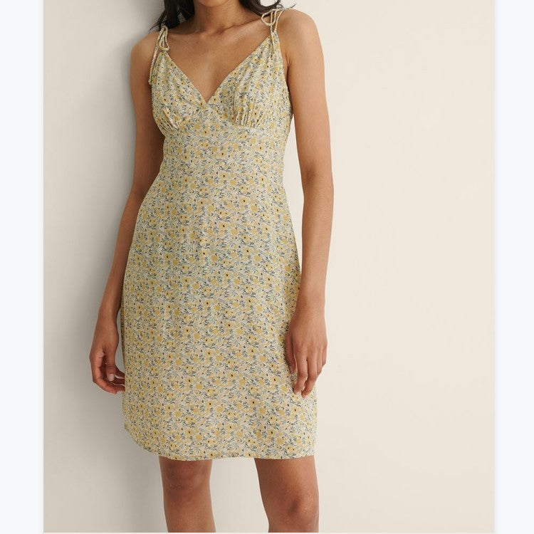 Floral Sling Dress Beach Seaside Vacation Waist Slim Slimming Long Skirt