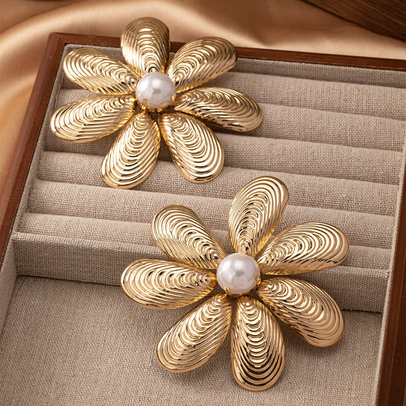 Golden Seven-petal Large Flower Stud Earrings Retro