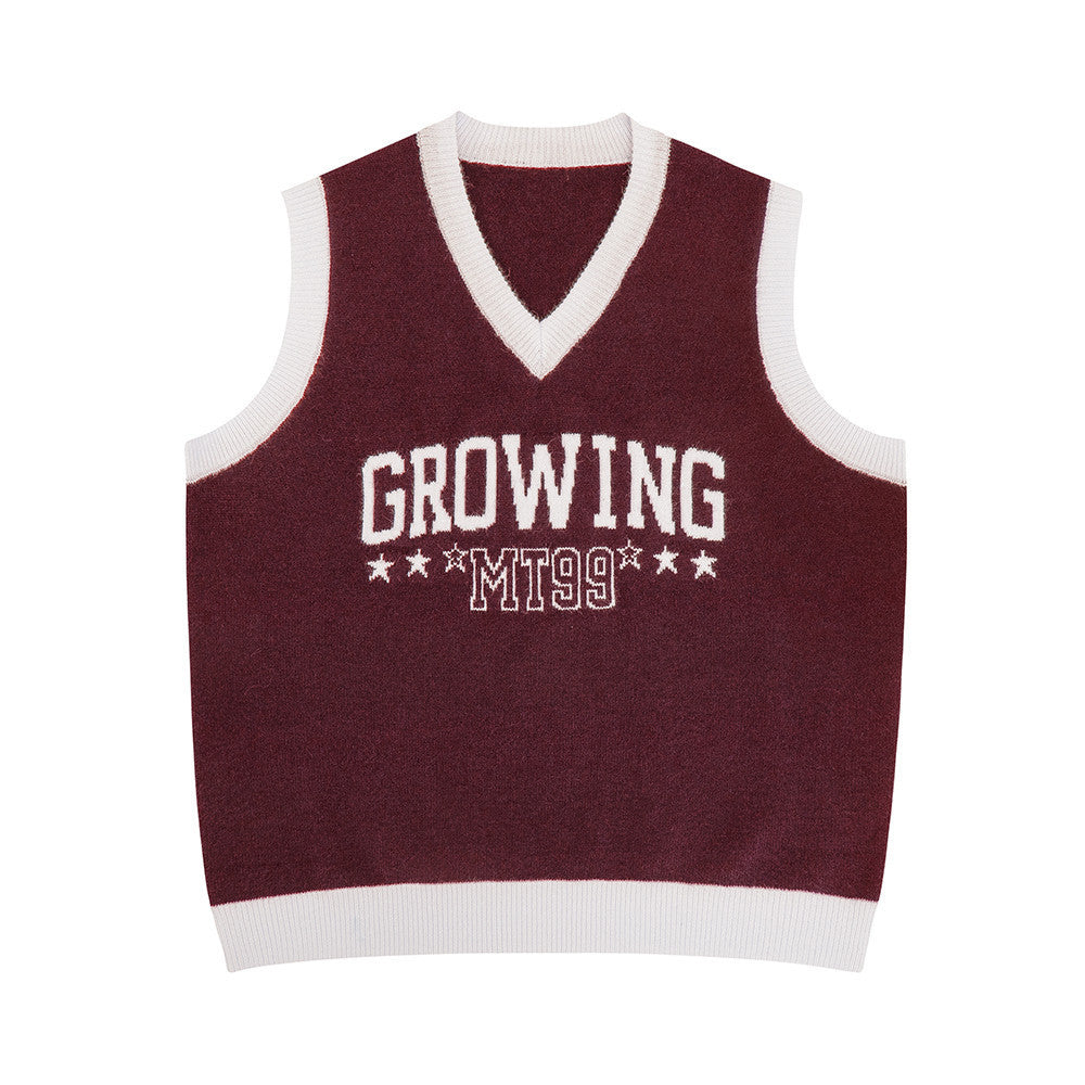 Jacquard Letter V-neck Knitted Sweater Vest