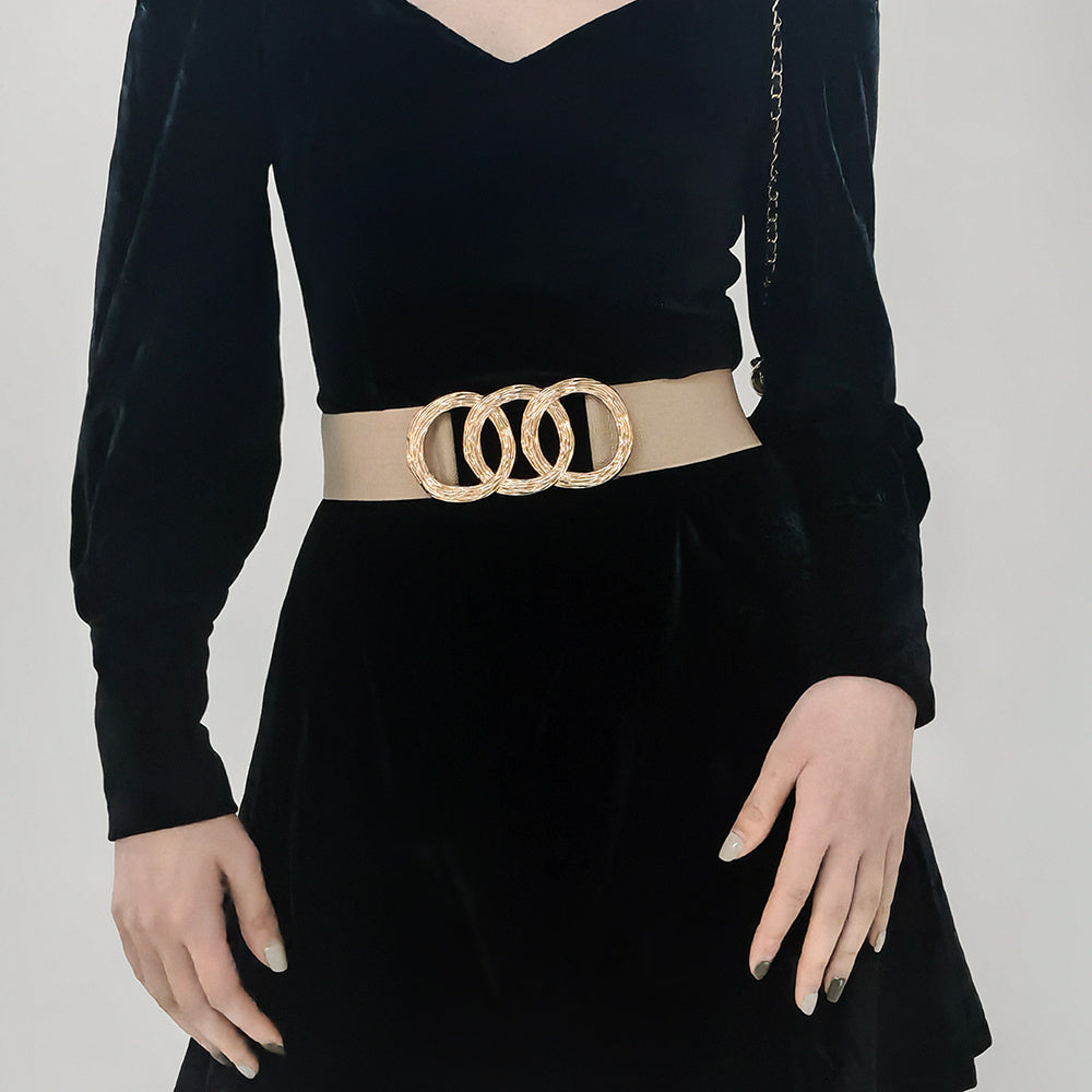 Ladies Belt High Sense Decoration With Suit Dress With Coat Geometric Circle Buckle Wide Belt