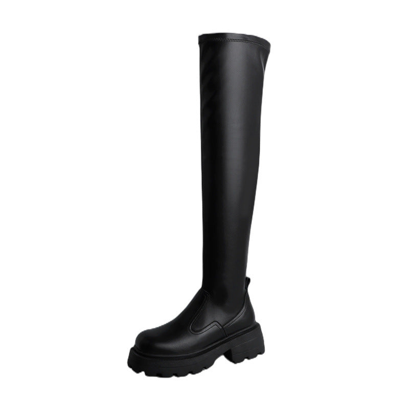 Leather Platform Elastic Over-the-knee Boots