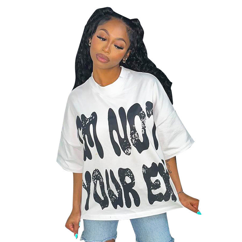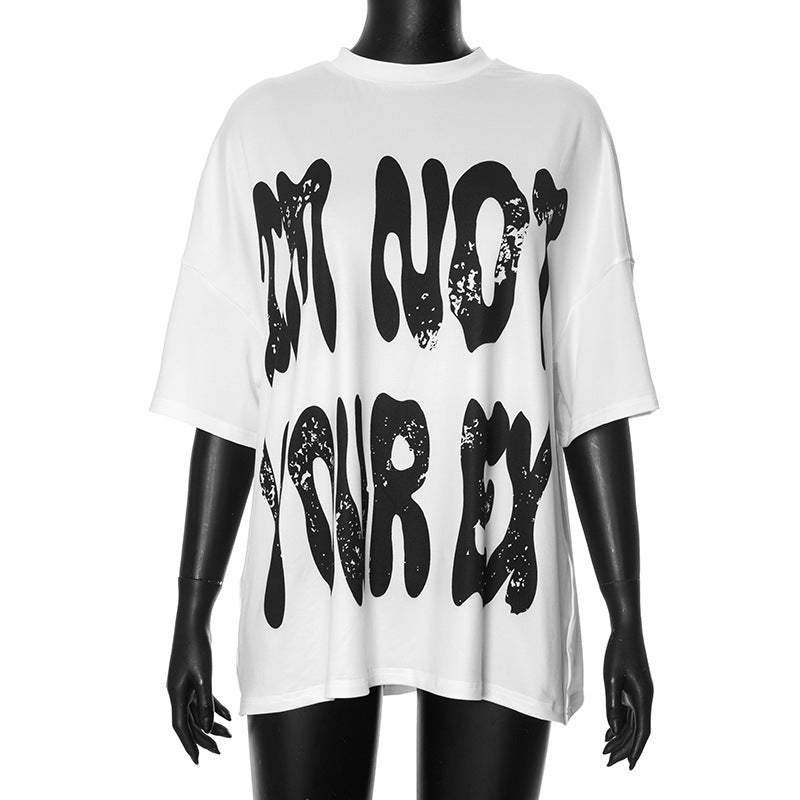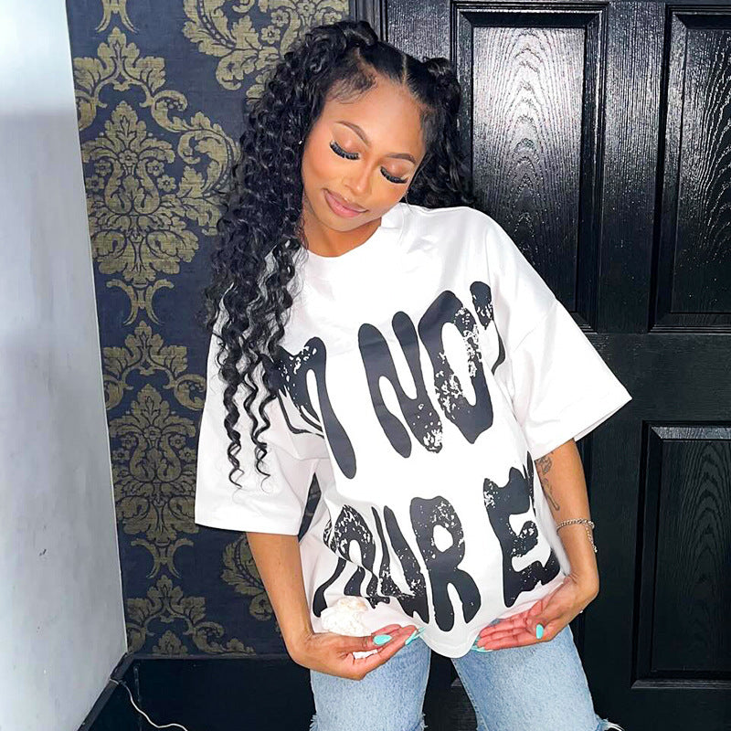 Letter Printed Round Neck Casual Loose-fitting T-shirt