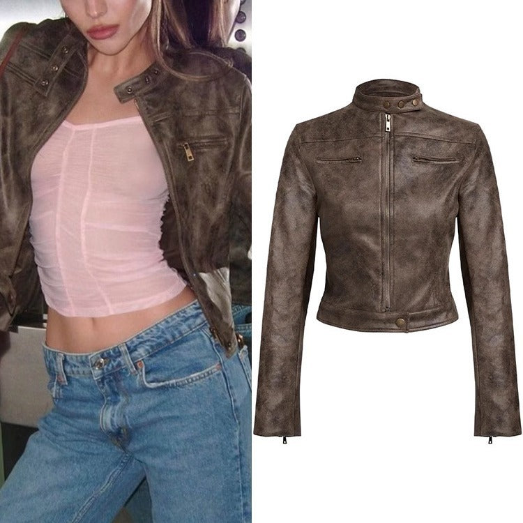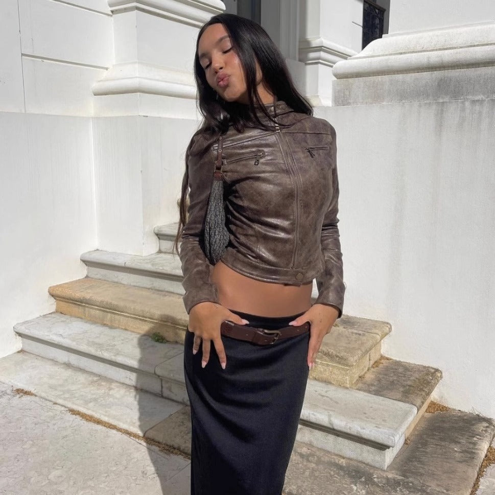 Maillard Motorcycle Hot Girl Vintage Distressed Leather Coat
