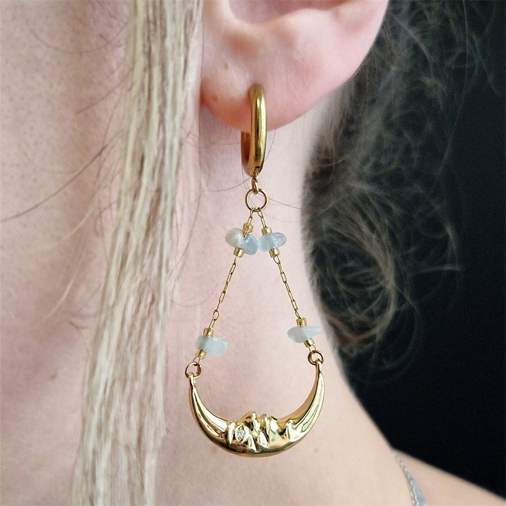Moon Earrings Pendant Agate Stone Chain