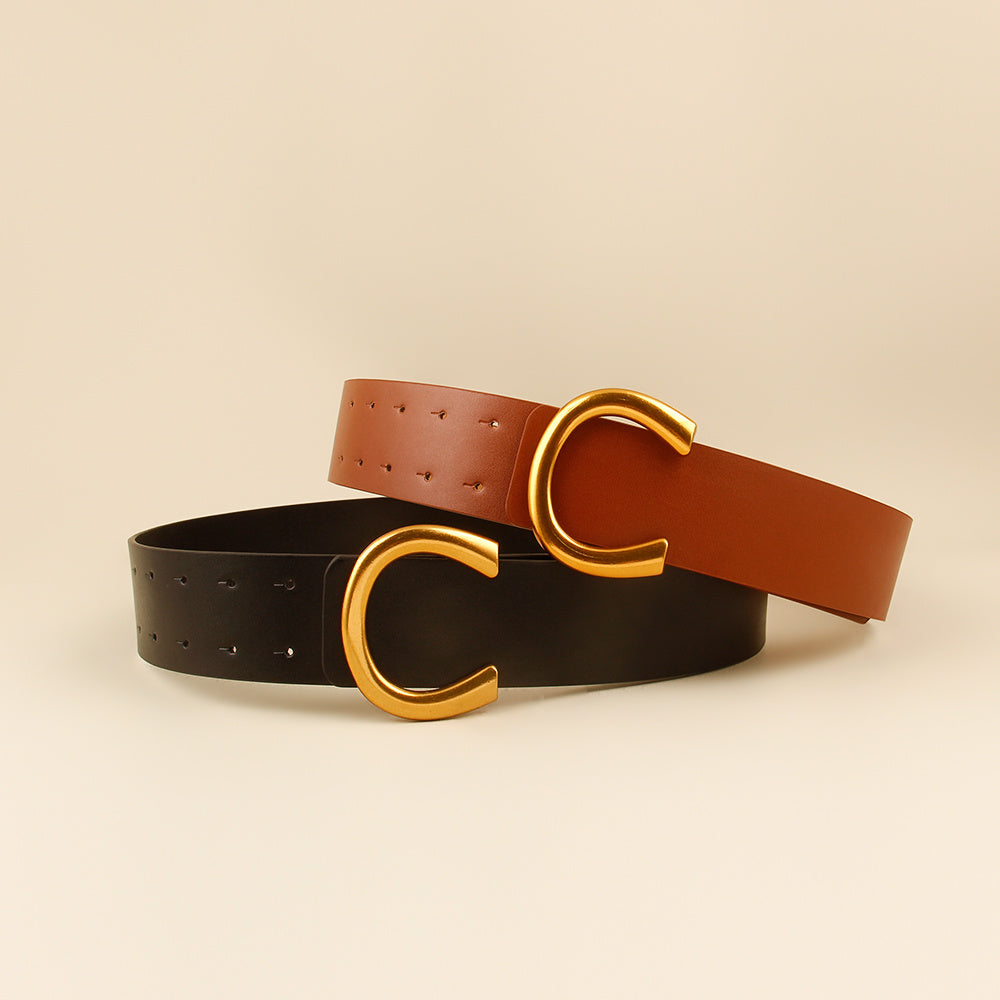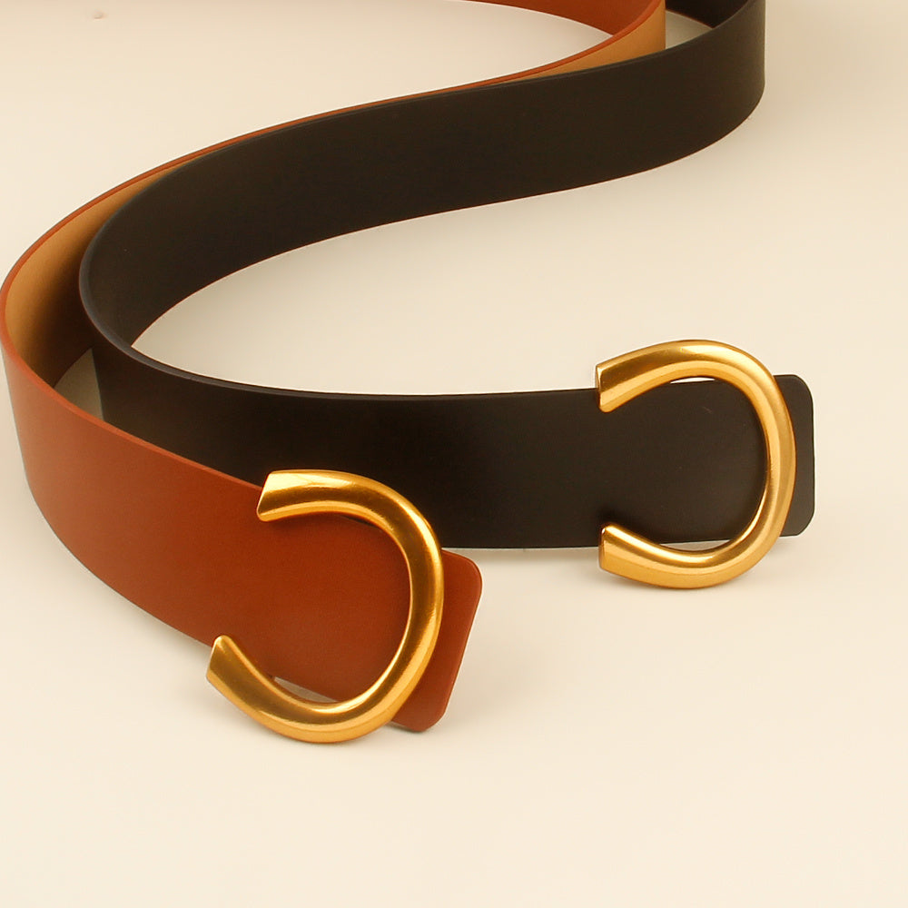 New belt women geometric metal buckle black belt dress shirt belted waist net red waist