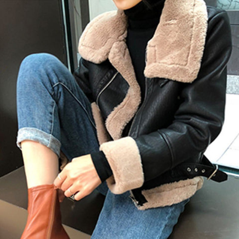 New velvet thick PU leather motorcycle suit