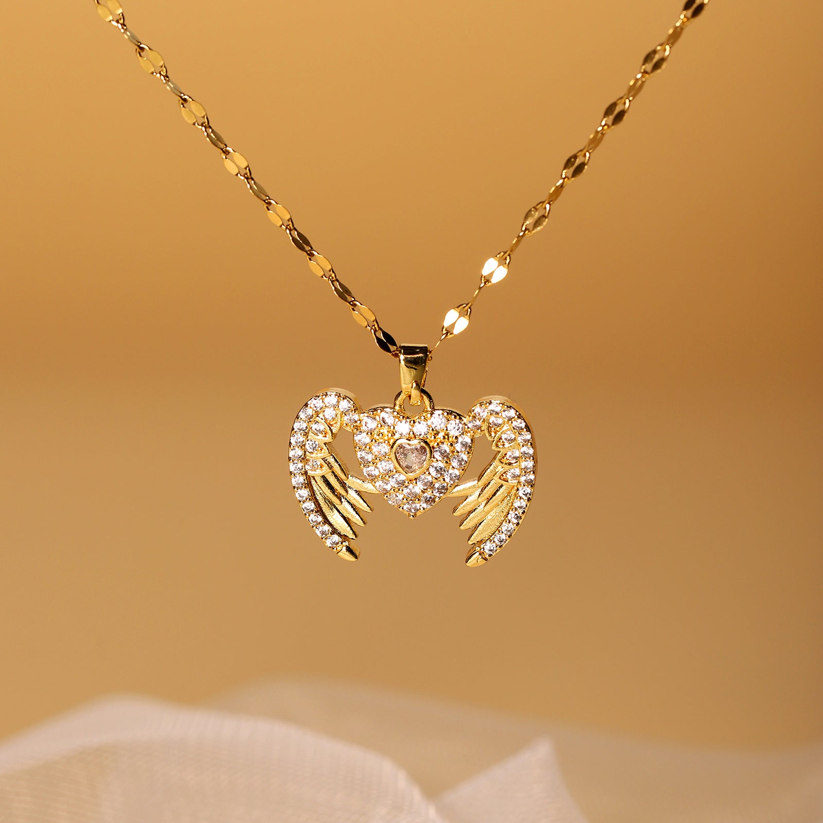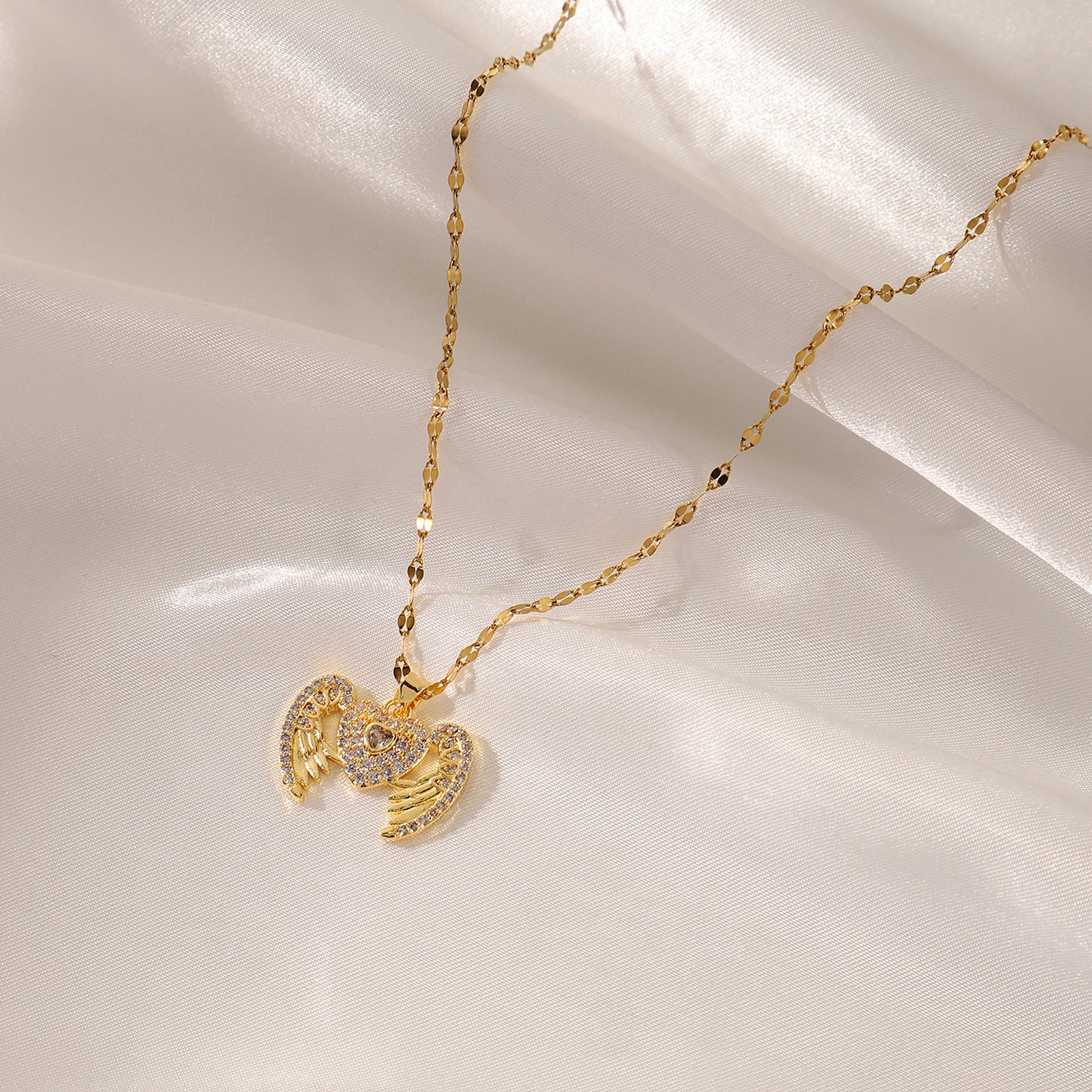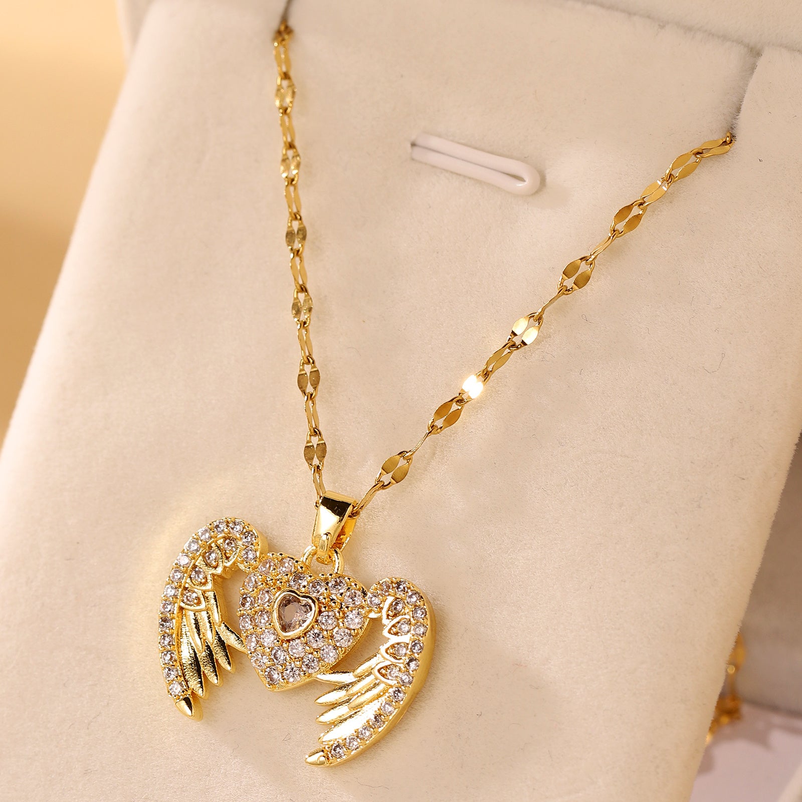Personalized Love Opening And Closing Necklace Angel Wings Pendant Fashion Versatile Stainless Steel Necklace