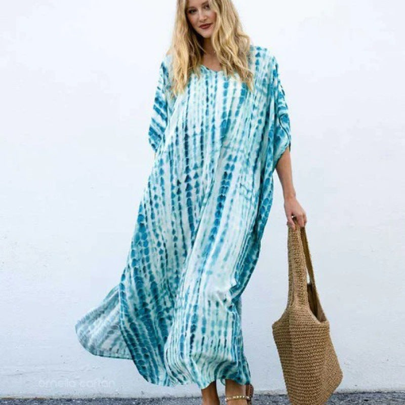Rayon Printed Blooming Loose Vacation Robe Beach Dress Bikini Sun Protection Shirt