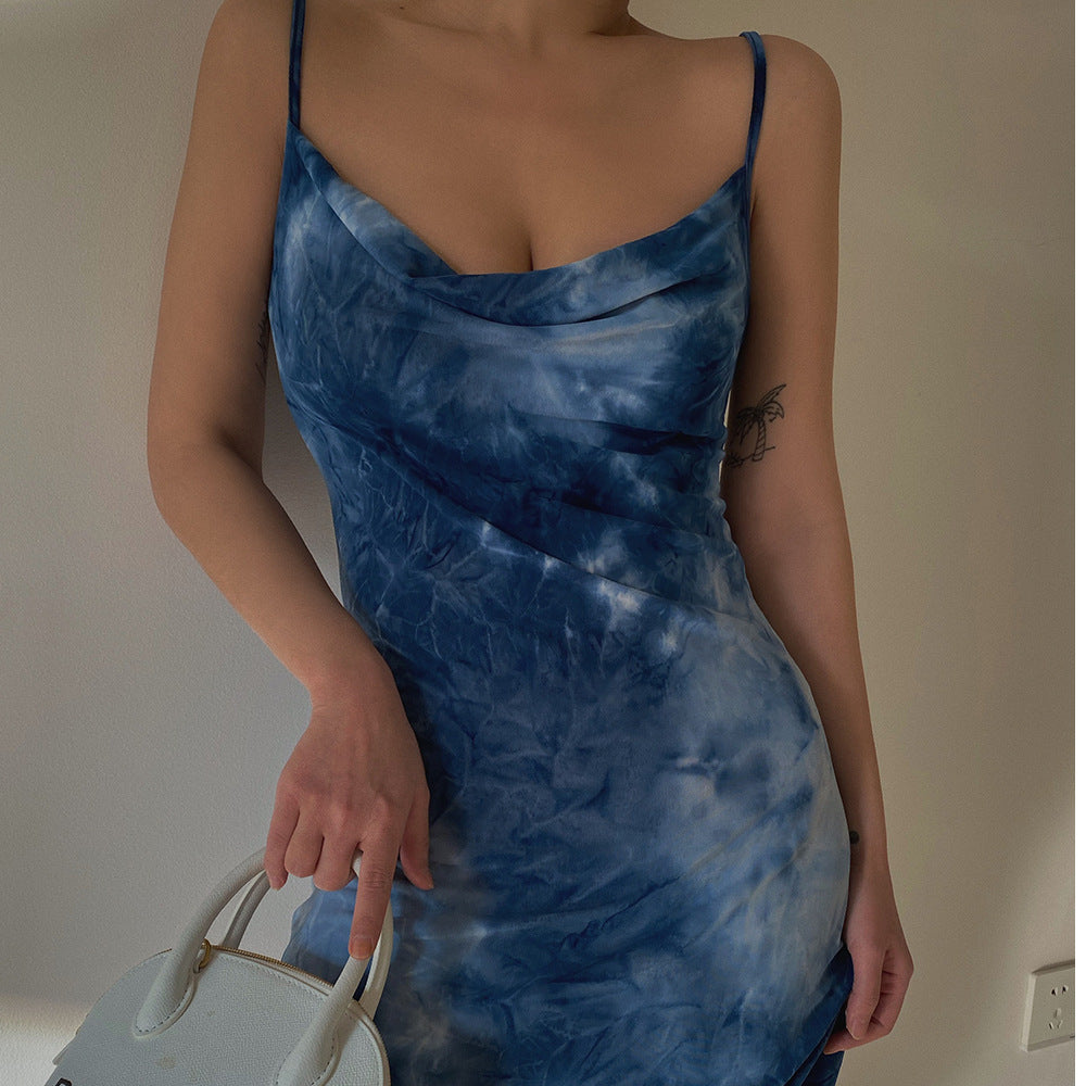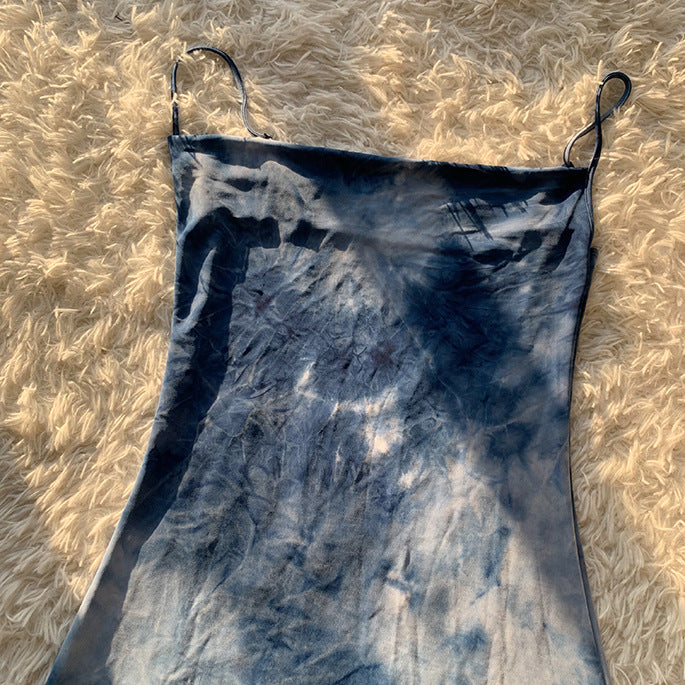Retro Tie-dye Suspender Skirt Women's Tight Waist Dress