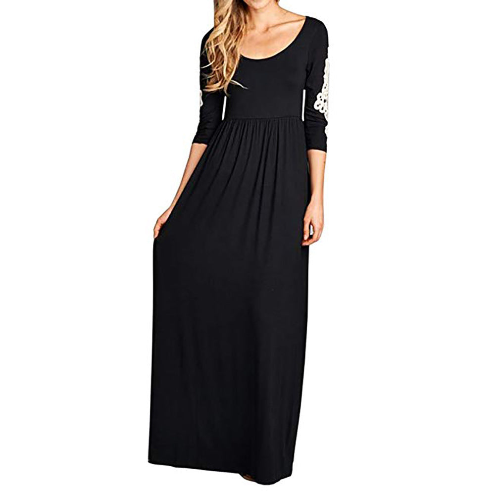 Round Neck Long Sleeve Lace Waist Maxi Dress