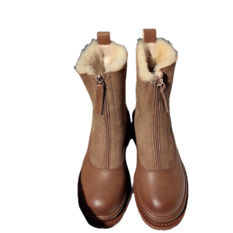 Soft Leather And Velvet Thick Snow Boots Female Insulated Cotton-padded Shoes