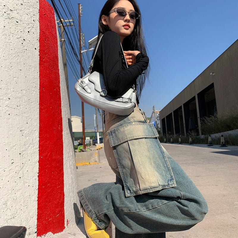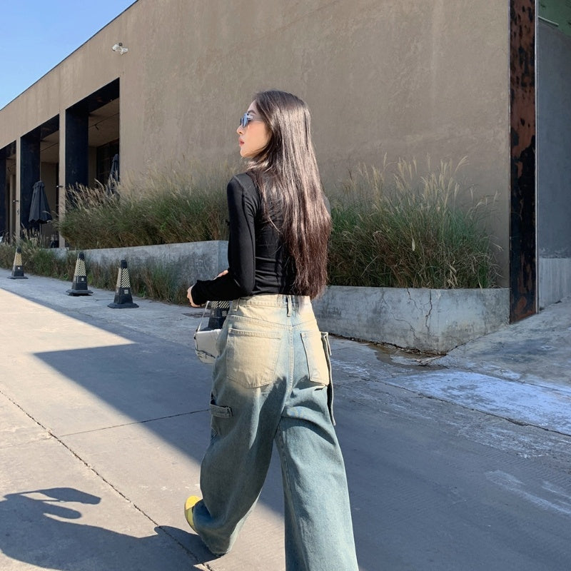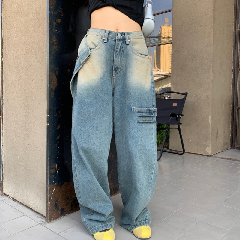 Spring Ins Versatile Retro Distressed Wide-leg Pants