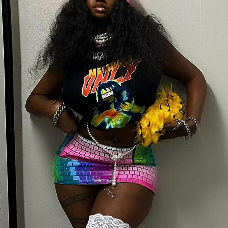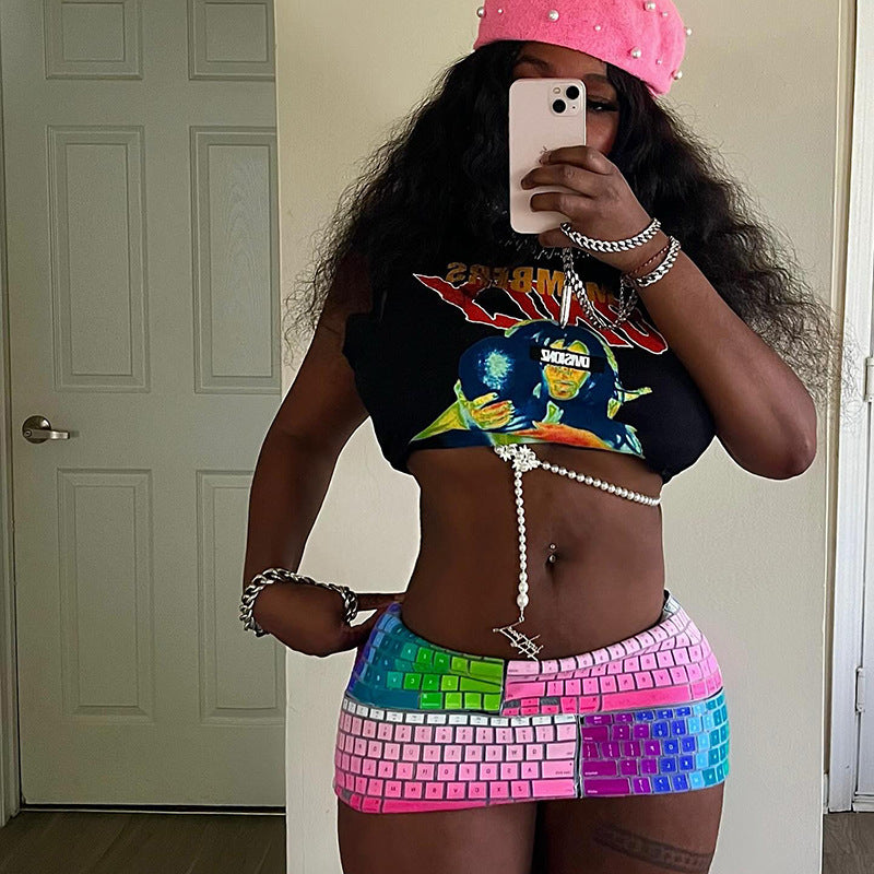 Street Keyboard 3D Printing Slim-fit Hip-wrapped Short Dress