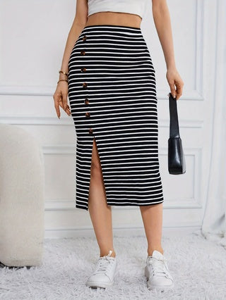 Summer Black And White Striped Knitted Skirt