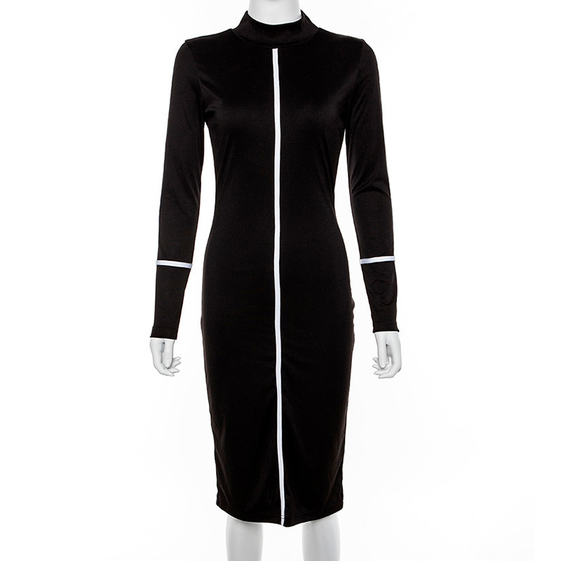 Summer new hit color long-sleeved midi dress