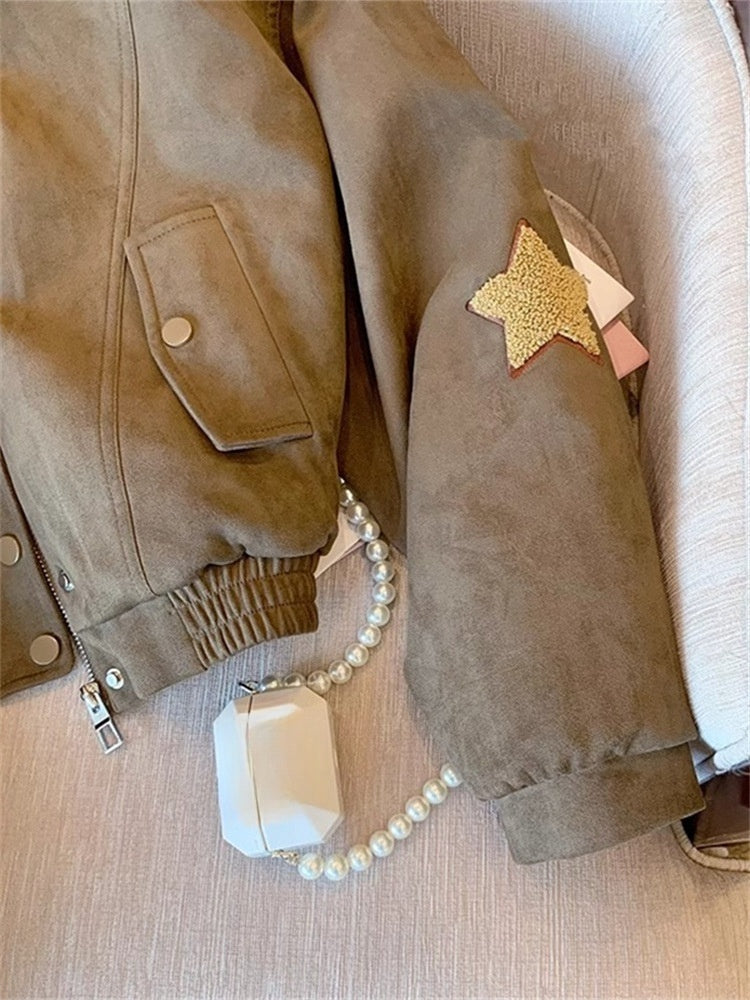 Thickening Design Sense Niche High Sense American Retro Biker's Cotton Jacket