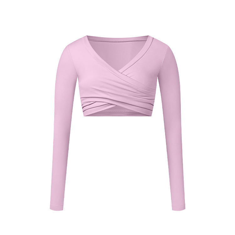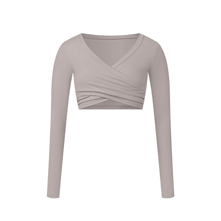 Tight Long Sleeve Cross Layered Sports Long Sleeve Brushed Top