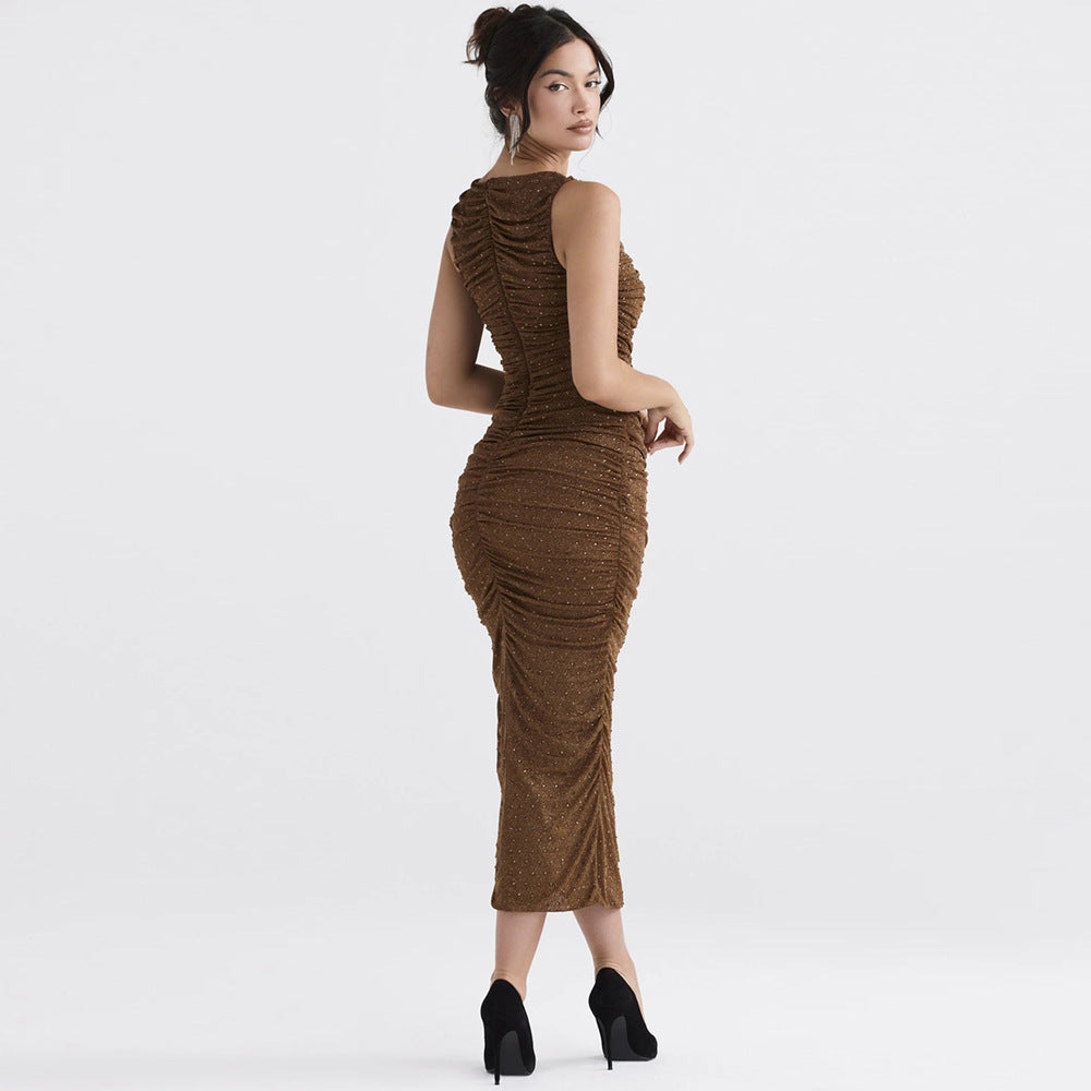 Tight Side Slit Pleated Party Party Dress Women