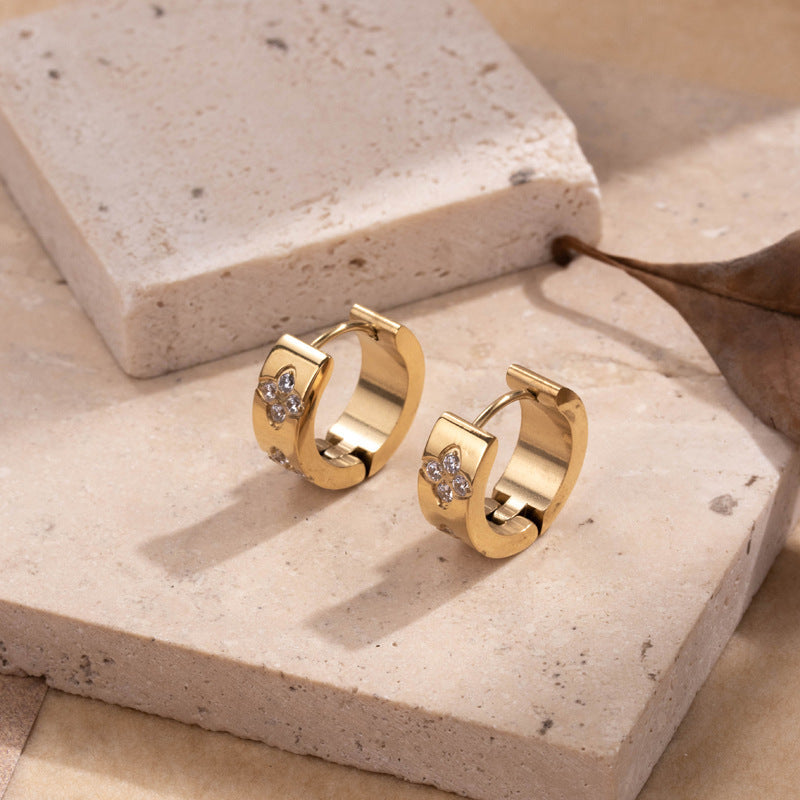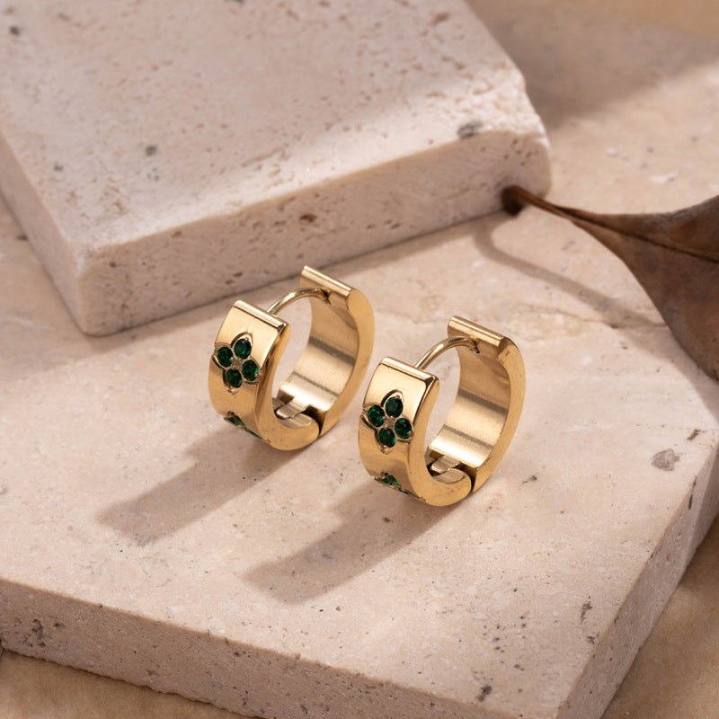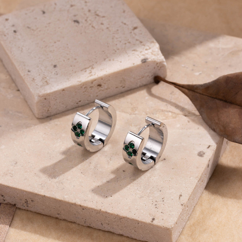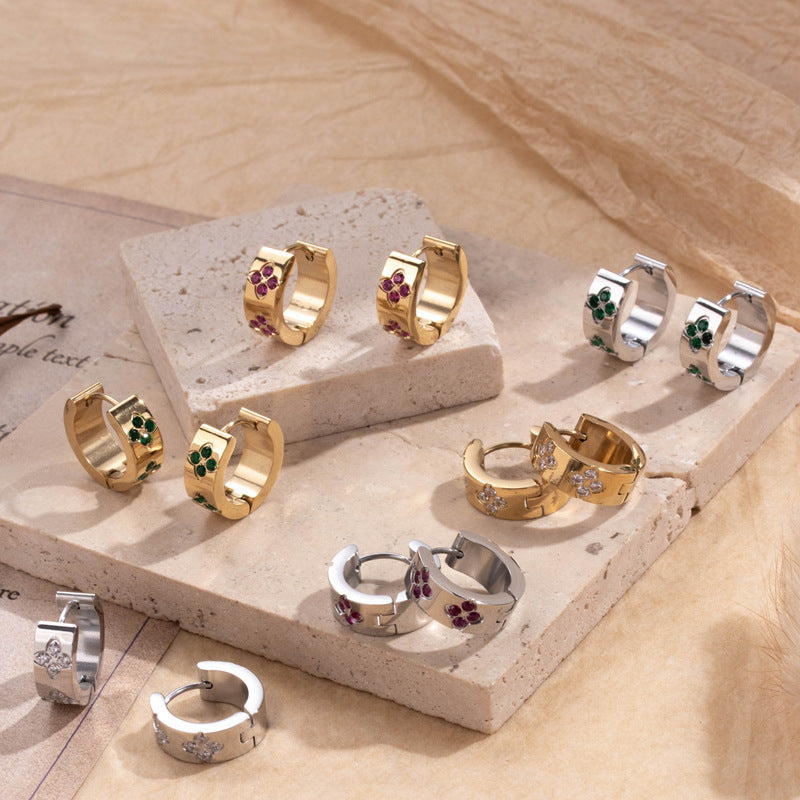 Titanium Steel Niche Retro Color Light Luxury Design Plum Blossom Zircon