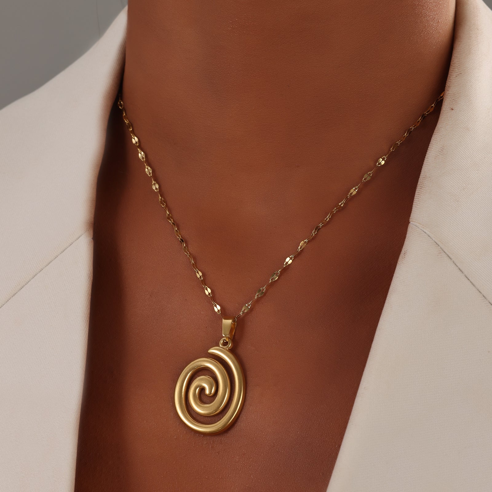 Unique And Niche Design Pendant, Stainless Steel Plated With 18k Gold, Creative And Versatile Geometric Vortex Necklace