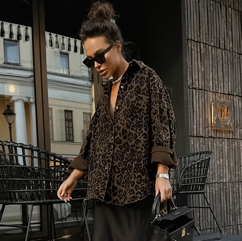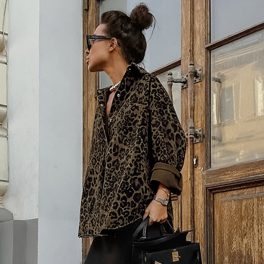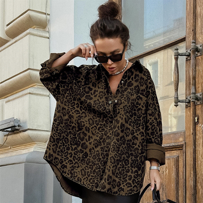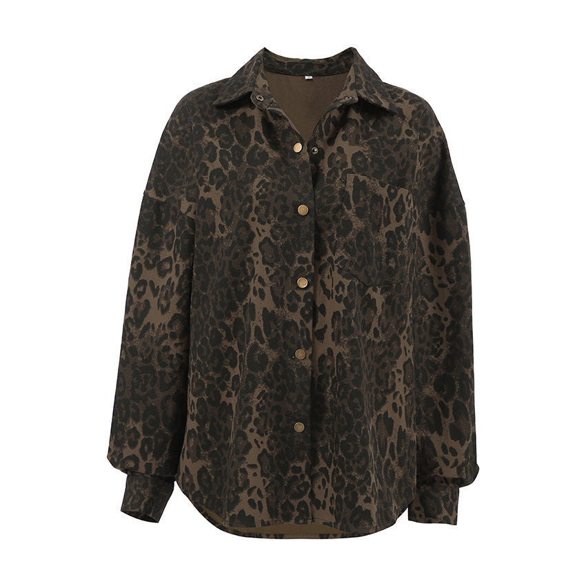 Vintage Cotton Leopard Print Baggy Coat Long Sleeve Women