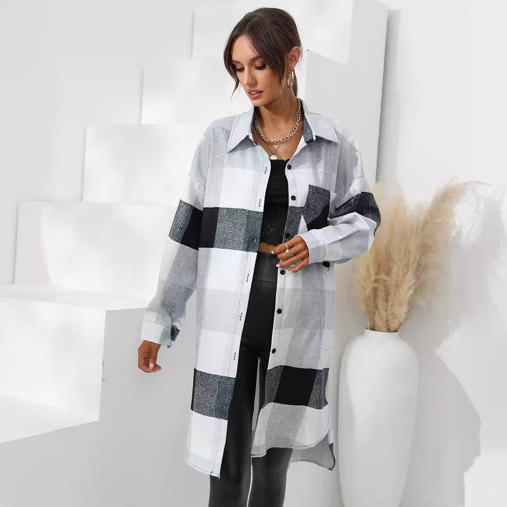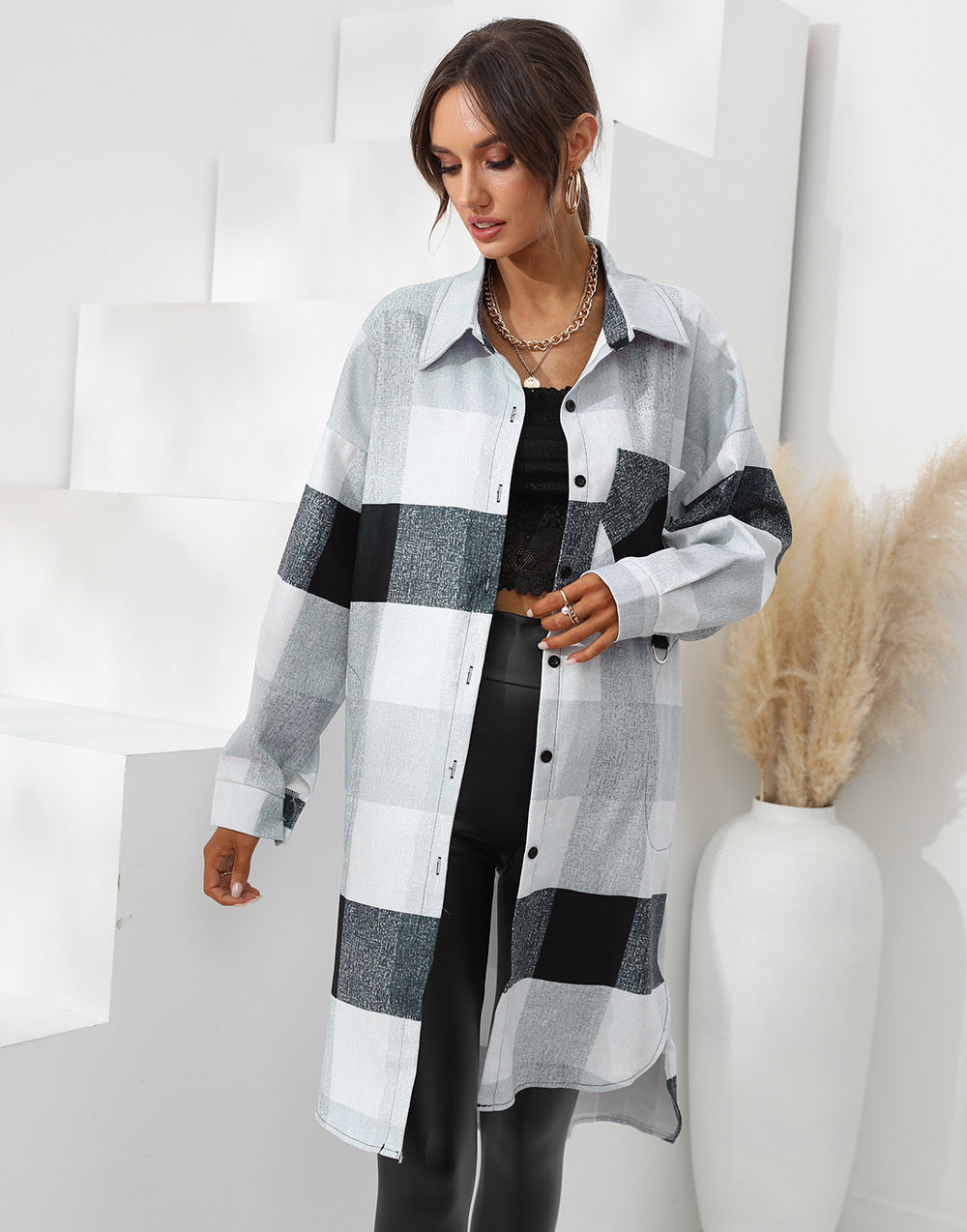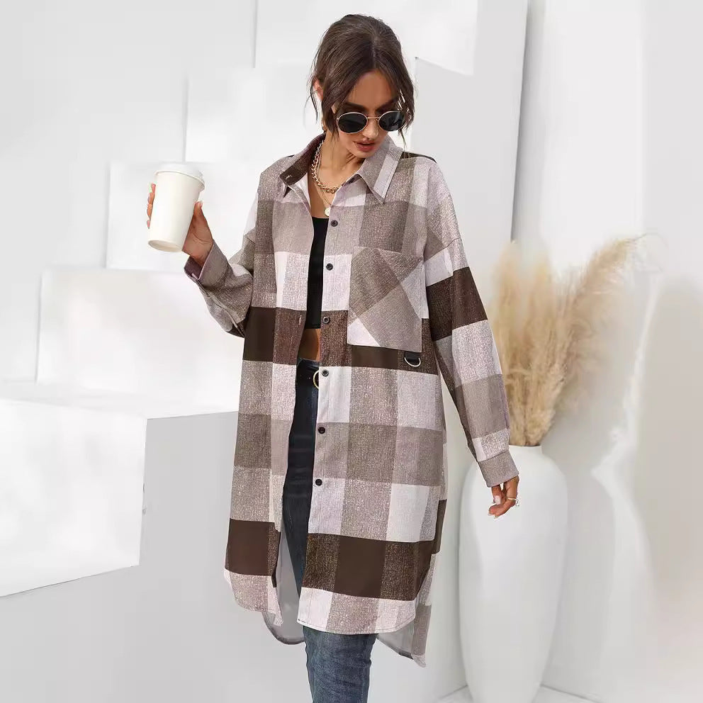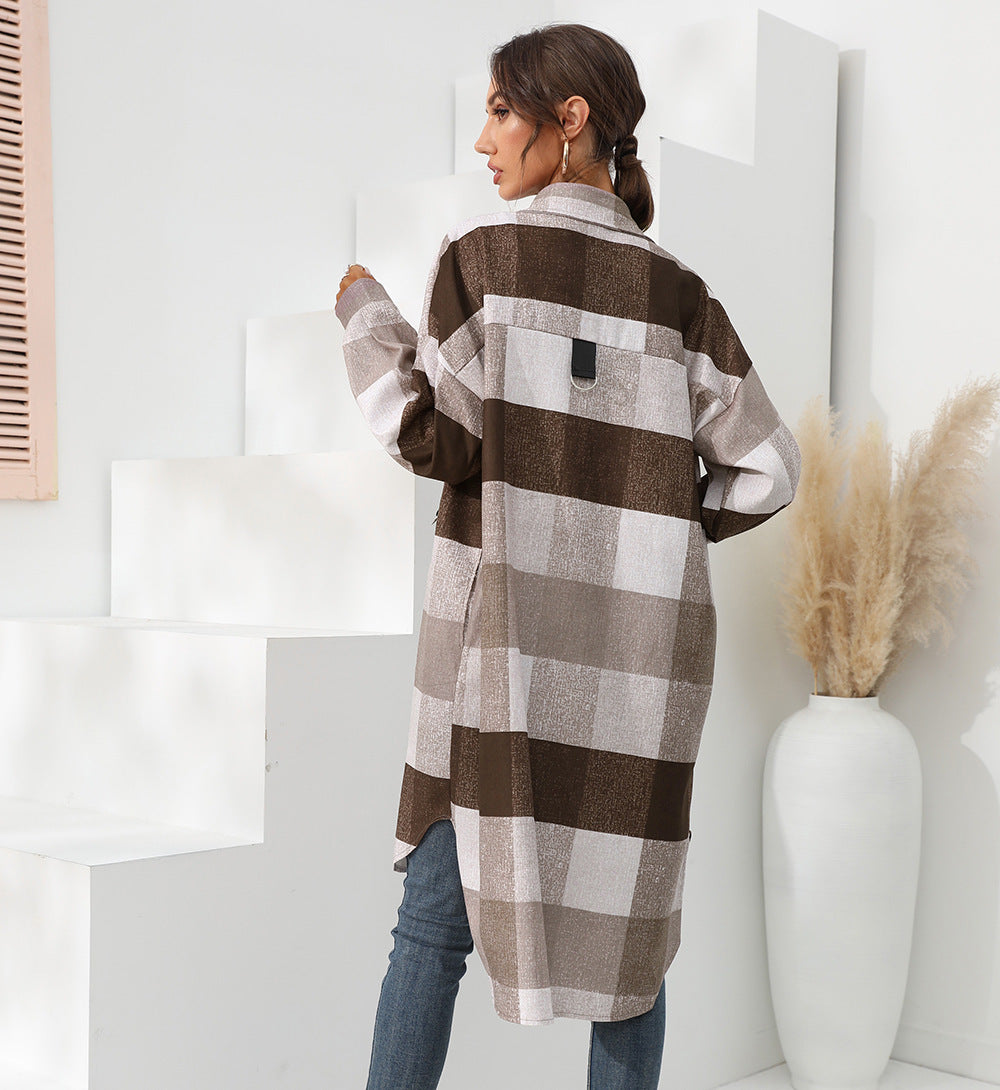 Women's Autumn And Winter Plaid Single-breasted Long Coat